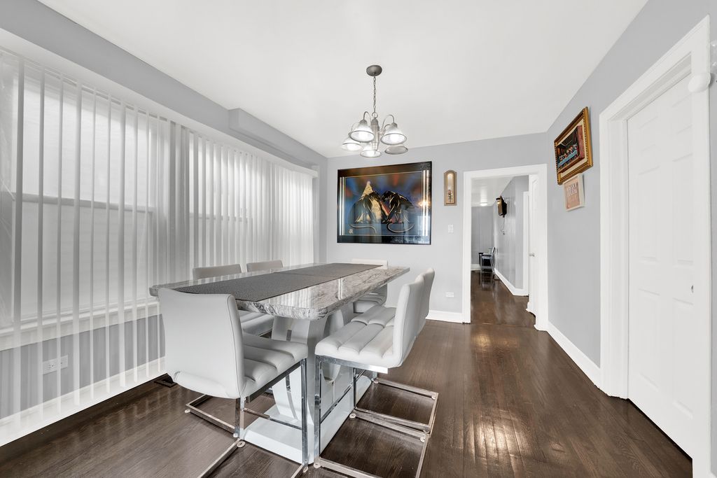 Beautiful bungalow offering 6 bedrooms and 3 full bathrooms, with one full bath conveniently located on each level. The main floor features hardwood floors and a formal dining room, creating a warm and inviting space for everyday living and entertaining. The updated kitchen includes new cabinets and granite countertops, with both gas and electric hookups available for the stove. This home also features three updated bathrooms and a full finished basement with additional bedrooms and a second kitchen, providing flexible living space. Thermal pane windows throughout help enhance comfort and efficiency. Enjoy outdoor living with a cement patio, a large deck, and two pergolas, perfect for relaxing or hosting gatherings. Additional highlights include a 2-car detached garage with door opener, along with a furnace and central air system approximately 5 years old. Move-in ready and conveniently located near parks, schools, shopping, and public transportation. Schedule your showing today!