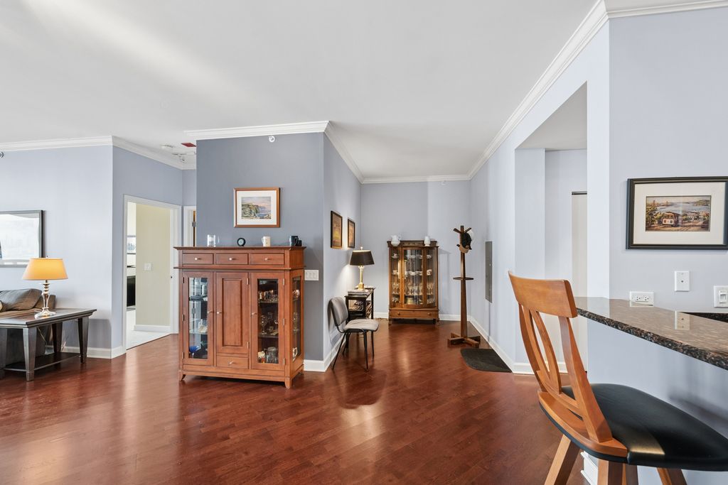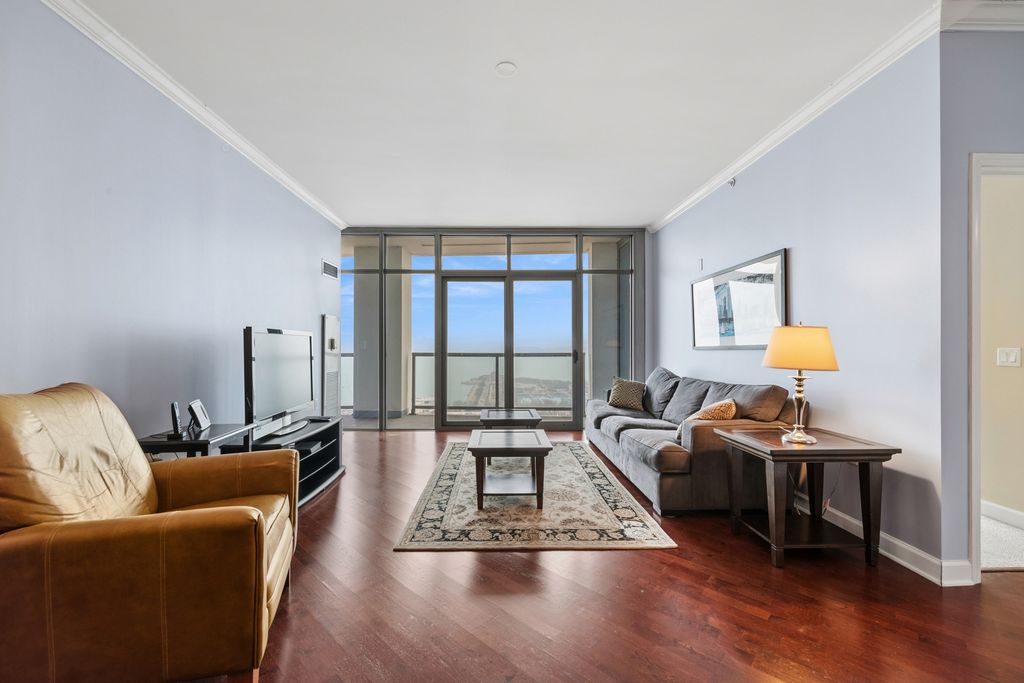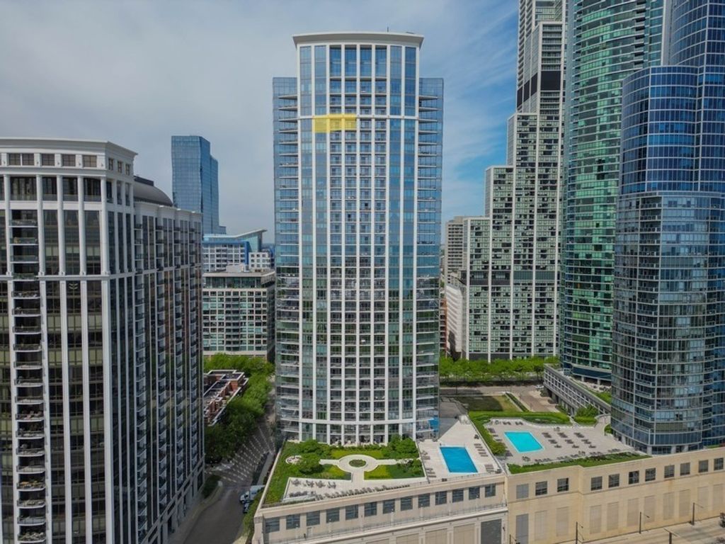 Sky high in the Crown of 1235 S Prairie Ave. Unit 3303 has many Developer upgrades. Kitchen cabinets, diagonal cut hardwood flooring. Lighting and bath fixtures. Stainless Kitchen appliances. Granite countertops. This unit has commanding views from the living and bedroom spaces. Large outdoor balcony, outdoor living room. This unit is priced with one parking space, GU 123. There is an additional parking space GU 124 asking $30,000. The 2 Premium parking spaces are on the first level of the heated garage. The building has undergone a major renovation over the last 3 years. It's a good time to be a buyer here.