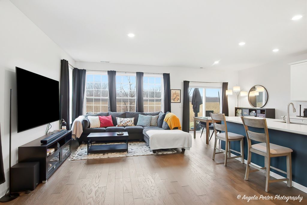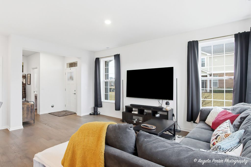 Beautiful 3 bedroom and 2 1/2 bath end unit on a premium lot in highly sought after Legend Lakes, offering peaceful nature views and abundant natural light. The kitchen includes stainless steel appliances, 42" cabinets, quartz countertops, and slow close cabinet doors and drawers. The spacious owners suite includes crown molding and bathroom with higher height vanity, quartz countertop and an over-sized, tiled shower. The home includes smart technology that includes: Ring doorbell and Alarm Security Kit with 2 added cameras, Smart Garage Control, Smart Water shut off, and Smart Thermostat. And everything is only 4 years old. You will fall in love with all the great activities to enjoy at the well sought after Legend Lakes Community with tons of walking and bike paths, ponds, parks, baseball, soccer & basketball fields.