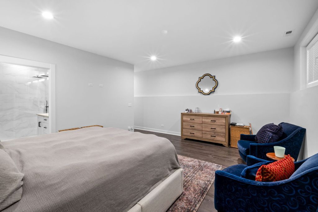 Newer construction duplex overlooking beautiful Humboldt Park lagoon. Built with a brick and fiber-cement exterior on an oversized lot, this solid and spacious 3 bed, 2 1/2 bath home lives like a single family. Unobstructed nature and water views from your living room allow for a truly picturesque, open feel with ample natural light. The kitchen features a large center island with bar seating, pendant lighting, quartz counters, and recently added custom cabinetry. Additional flex space on the main level can be used as a work from home area or formal dining. The lower level features three well sized bedrooms, two full baths, and a bonus family/rec room with built-in wet bar. Lower level also includes full-sized linen and laundry closets with side-by-side laundry units. The primary bedroom offers an en-suite bathroom, beautiful walk-in shower, heated tile floors, and extremely generous closet space with built-in organizers. Enjoy a huge covered rear patio allowing for plenty of outdoor entertaining space and featuring composite decking as well as gas, electrical, and audio/video hookups. Additional outdoor space on the ground level is dedicated to the unit and has been upgraded with low maintenance turf. One garage parking space is included. Ideal location in vibrant East Humboldt, with 200+ acres of trails and nature at your front door. Playground, tennis courts, and lagoon are all within steps of the property. Surrounded by cafes, restaurants, and shopping. This one wont last!