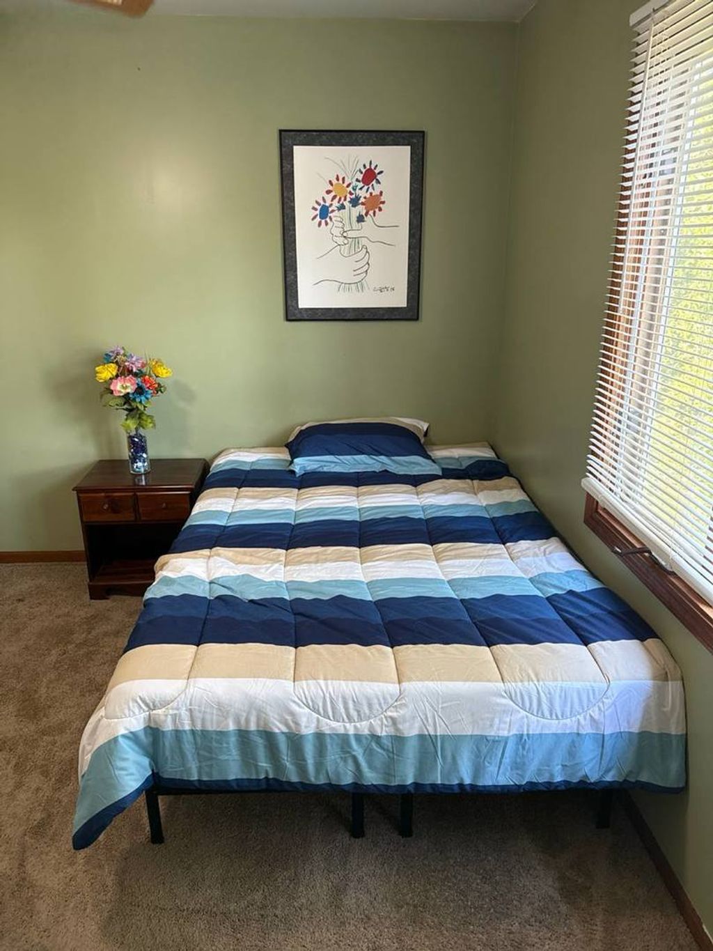 EXCELLENT LOCATION! Spacious two-story home featuring 6 bedrooms and 2 full bathrooms. Step inside and you'll immediately notice the abundance of natural light, beautiful hardwood floors, and a cozy electric fireplace in the living room that creates a warm and inviting space. The main level includes two bedrooms and a full bathroom, along with a generously sized dining room conveniently located next to the kitchen. The kitchen offers granite countertops, stainless steel appliances, and plenty of cabinet space for storage and functionality. Upstairs you'll find four additional bedrooms and a Jack-and-Jill style full bathroom, providing flexible space for a larger household, guests, or home offices. Outside, the property features a 2.5-car detached garage and a long concrete driveway, offering ample parking and convenience. Recent updates include: Roof and downspouts (2024) Water heater (2023) Updated living room light fixture (2024) Newer 2.5-car garage with concrete driveway Brand new carpet. Professional landscaping and GFCI outlets Conveniently located near the Bensenville Metra station, downtown Bensenville, major highways, O'Hare Airport, Redmond Park, The Edge Ice Arena, schools, and more. A wonderful opportunity with plenty of space and a great location. Come take a look! (Garage cabinets excluded.)