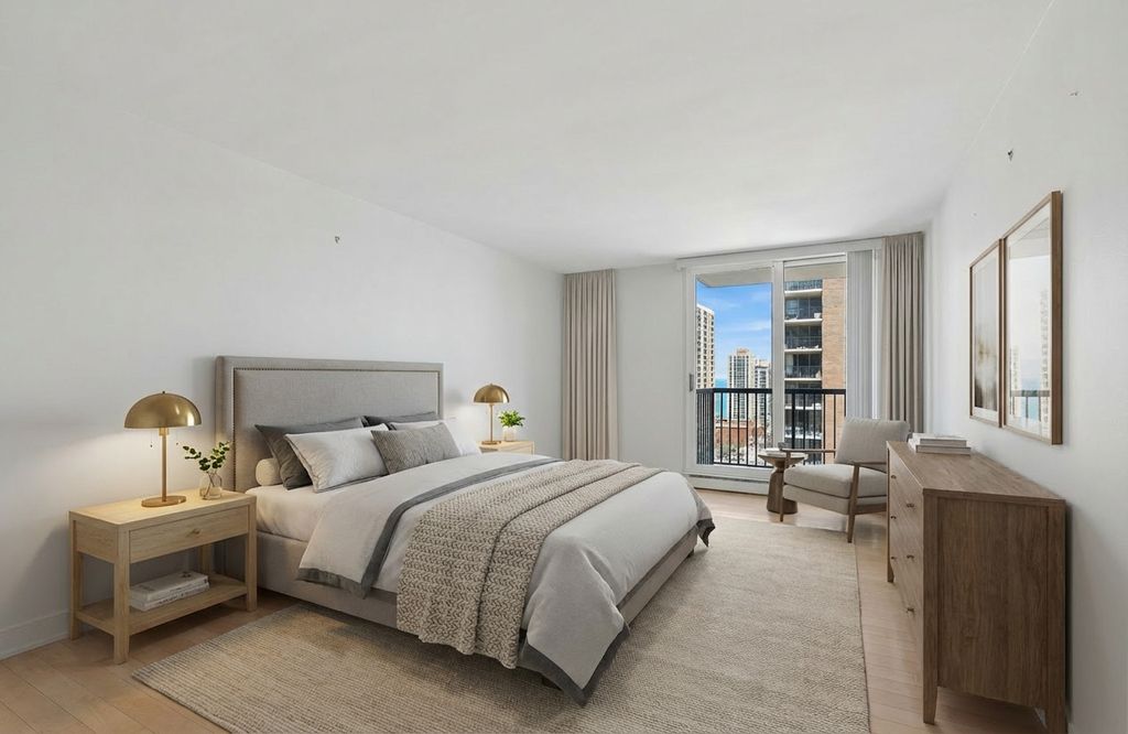 Stunningly renovated 2-bedroom, 2-bathroom condo in the heart of Chicago's beautiful Edgewater neighborhood. Step into this 1,600 sq. ft. corner unit with breathtaking, panoramic views of Lake Michigan and the city skyline from three private balconies. This completely updated home boasts a brand-new kitchen, which is a chef's dream with modern cabinetry, a spacious island, waterfall edge quartz countertops, and a chic marble backsplash, SS Bosch appliances. 2026 New HVAC, custom window treatments throughtout. The open-concept living and dining area, featuring beautiful hardwood floors, is perfect for entertaining or enjoying a quiet evening at home. Both bathrooms have been tastefully remodeled with marble counters and elegant porcelain tiles. This full-amenity building offers the ultimate in convenience and luxury, including a 24-hour doorman, an outdoor pool, a sundeck, a fitness center, and a party room. One garage parking space and a storage unit are included. This property offers the perfect blend of city living and natural beauty. You are just steps away from the lakefront, with its beaches, parks, and walking/biking trails. The neighborhood is a food lover's paradise with a wide array of restaurants, from casual cafes to fine dining. You will also find an abundance of shopping options, including boutiques, grocery stores like Whole Foods and Mariano's, and the Edgewater Farmers Market. Getting around the city is a breeze with multiple public transportation options right at your doorstep. The CTA Red Line and several bus routes, including an express bus to downtown, provide quick and easy access to the Loop, the Magnificent Mile, and world-class museums, dining & shopping.