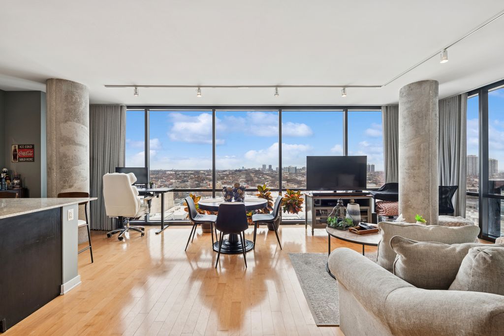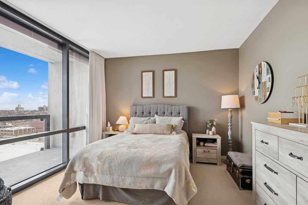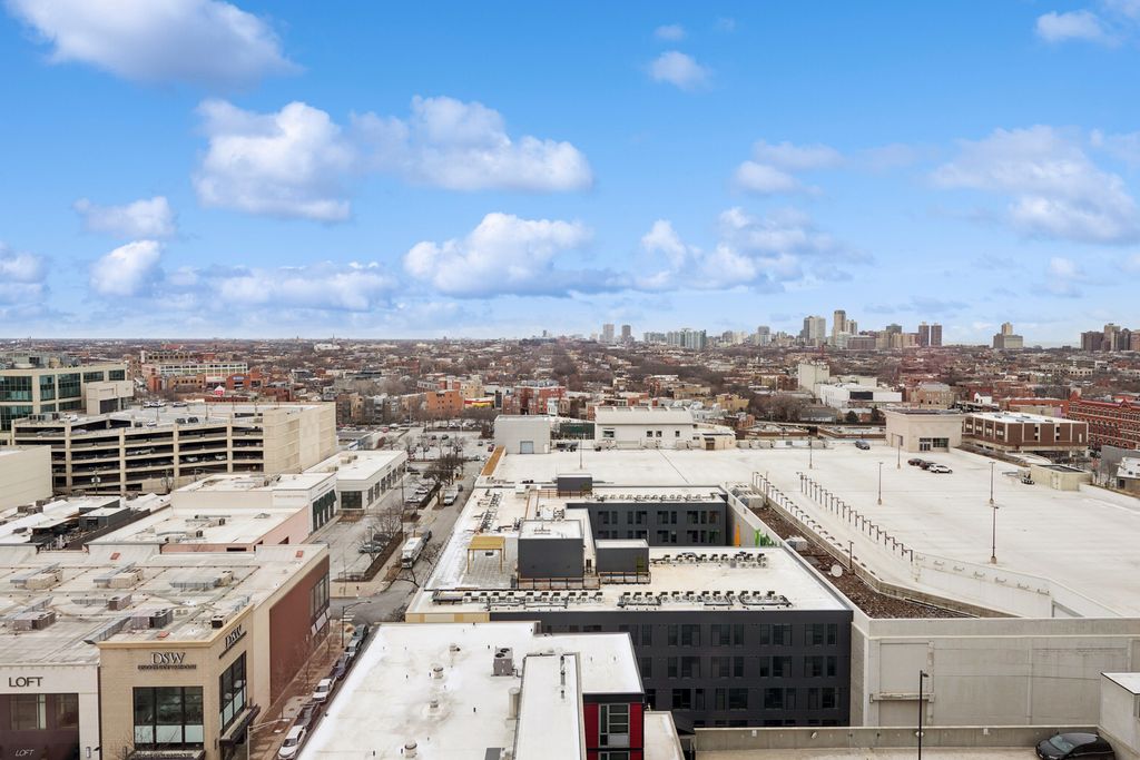 Unobstructed and forever views from this high floor, complete, pristine and contemporary, all steel and glass high-rise home just south of North Avenue where Lincoln Park, Old Town and River North converge. Residence 1504 offers the best forever Chicago neighborhood views with north, east and west exposures and seasonal scenes, emotional sunsets and sunrises. 10' Floor to ceiling glass curtain walls, 12' wide by 6' deep private terrace off sumptuous 29' wide open, living space featuring all "tongue and groove 4" hardwood floors" which accommodates living room, dining, and home office. Open kitchen concept with peninsula, seating for three, straight edge Impala granite, Stainless steel appliances (dishwasher, 6 months old), KitchenAid refrigerator with icemaker/water dispenser, gas range. disposal, dual sink with "Swan" faucet and pull out spray, all wood, flat, contemporary cabinetry. Full height, cubed, glass mosaic backsplash. One Ecobee thermostat. Primary bedroom with low hair light grey carpeting, black-out basket sheer, floor to ceiling draperies. Custom BUILT-IN CALIFORNIA CLOSETS. Hallway closet storage and full size stackable washer and dryer (with full drums). Formal entry, proper coat closet. Bathroom dressed in Statuary marble Kohler plumbing fixtures, wider vanity with additional counter space. Tub/shower combination. Common building features including onsite professional management team, maintenance and engineering staff, 24 hour doorman, state of the art gym facility. Amazing location walk to Redline, bus, New City Mall complex, Movie Theatre, Mariano's, Whole Foods, Apple Store, restaurants, specialized retail and "big box" retailers, Clybourn Corridor, Steppenwolf, Old Town's Prized North Avenue "stretch" and Wells Street. Parking with newly installed EV charger and storage locker on 5th floor of building included in the list price. Most Complete one bedroom residence on the market in a modern high rise building featuring contemporary finishes, private terrace, limited common element parking with no tax bill, state of the heart gym, unobstructed views, 10' foot ceilings with floor to ceiling windows, in unit washer/dryer, turnkey home with pride of ownership.