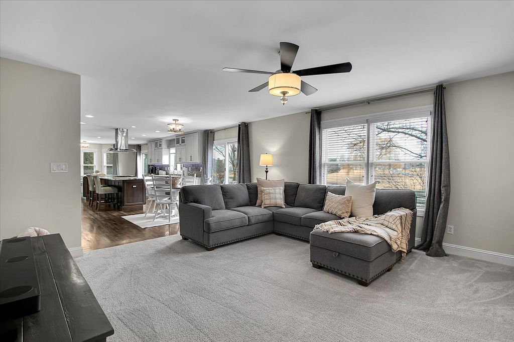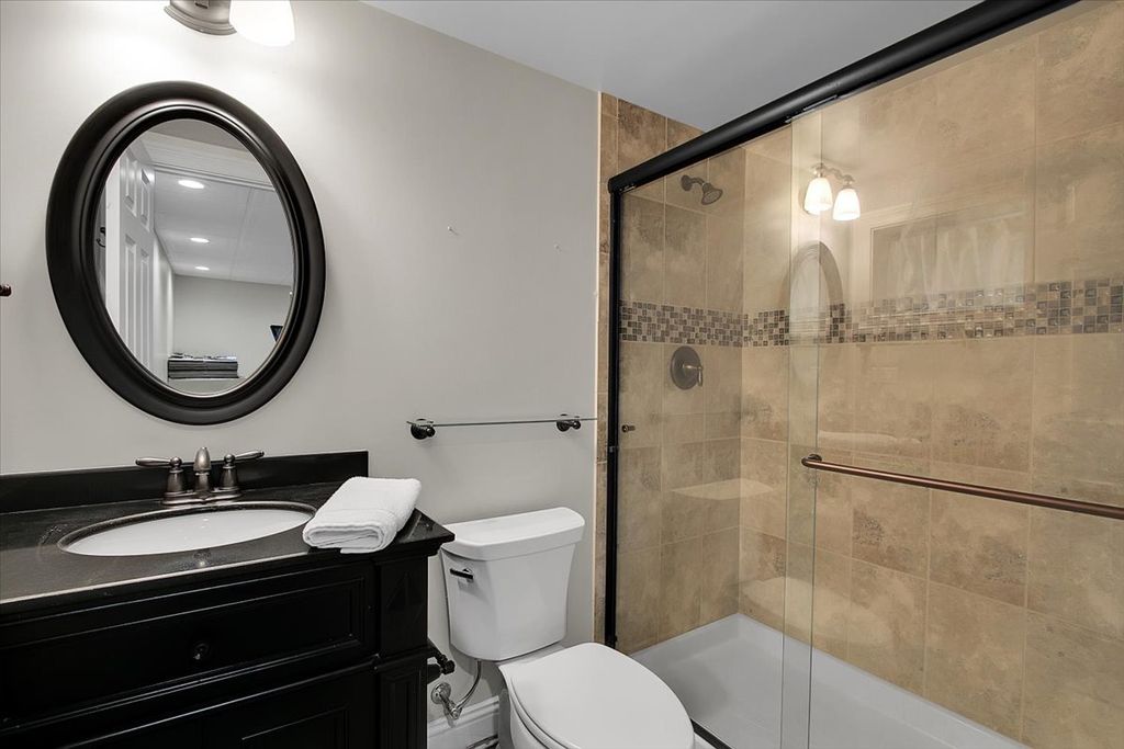 Blackberry Creek Pond Views | Finished Basement + New Roof & HVAC Experience Blackberry Creek living with scenic pond and walking-path views right from your backyard. This Georgian-style home welcomes you with a charming front porch and sun-filled interiors with hardwood floors throughout the main level. The spacious kitchen is built for gathering, featuring double islands, granite countertops, white cabinetry, and stainless-steel appliances, and it opens to the adjacent family room with a cozy fireplace. Host holidays in the formal dining room or enjoy casual mornings at the breakfast bar and breakfast area. Upstairs, retreat to the vaulted primary suite with a large walk-in closet and spa-style bath offering double sinks, a soaking tub, and a separate shower with full-body sprays. Three additional bedrooms, a full hall bath, and convenient second-floor laundry complete the upper level. The finished basement adds exceptional flexibility with a large rec room, second fireplace, wet bar, full bath, and a bonus room (plumbed for a sink) ideal for a studio, hobby room, or home office. Big-ticket updates deliver peace of mind: new roof, gutters, and downspouts (2025); high-efficiency furnace and A/C (Dec 2024); and new washer system with pedestal mini washer (perfect for small loads), plus new dryer and dishwasher (2025). The interior was repainted in 2022, so the home feels move-in ready. Additional features include a radon mitigation system, backup sump pump, and owned water softener. Relax on the patio overlooking the pond and walking path, and enjoy being close to schools, parks, Metra, shopping, and I-88.