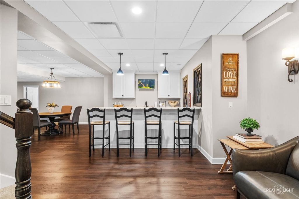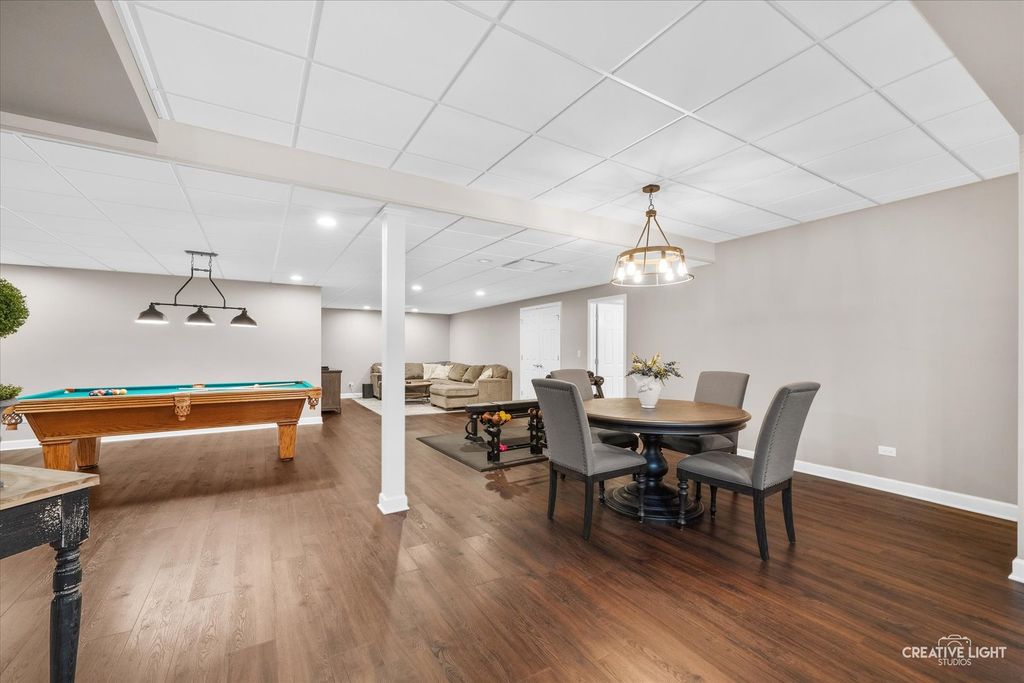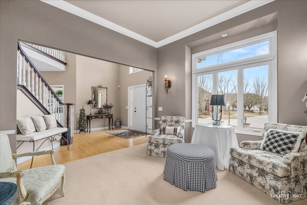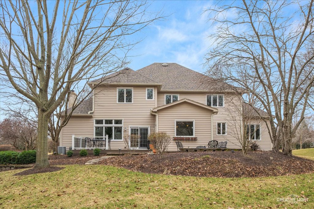 Live your best life in this beautifully appointed home in sought after River Run subdivision. Volume ceilings in living room and dining room provide an elegant area for entertaining. Remodeled gourmet kitchen with stainless steel appliances including a new refrigerator, custom cabinetry, center island with seating provides the perfect space for casual dining & guests. Sunroom with skylights fill the space with sunshine. Kitchen opens to oversized family room featuring thoughtfully considered updates including cabinetry and windows added to flank each side of fireplace, wet bar with rich cabinets & beverage fridge. Main-level office with adjacent full bath offers flexible use as sixth bedroom or in-law space. First floor laundry with updated cabinets & Electrolux washer & dryer. Primary suite has walk-in closet with custom organization system and luxurious renovated bath. Spacious additional bedrooms share updated hall bath. Fourth bedroom includes ensuite bath. Full finished basement with fifth bedroom, half bath, recreation room and wet bar adjacent to wine cellar. Two storage rooms. Scenic backyard to enjoy composite deck, paver patio & water feature. Close proximity to River Run, club membership included with sale has Indoor/Outdoor pool, Clubhouse with banquet facility, Pickleball/tennis courts. Neuqua Valley high school district. Close to shopping, dining and expressway!