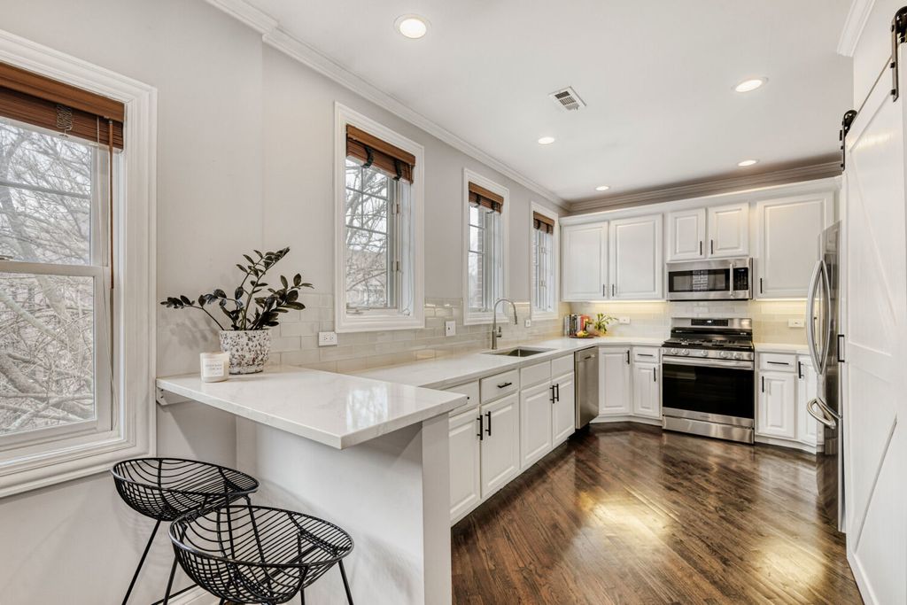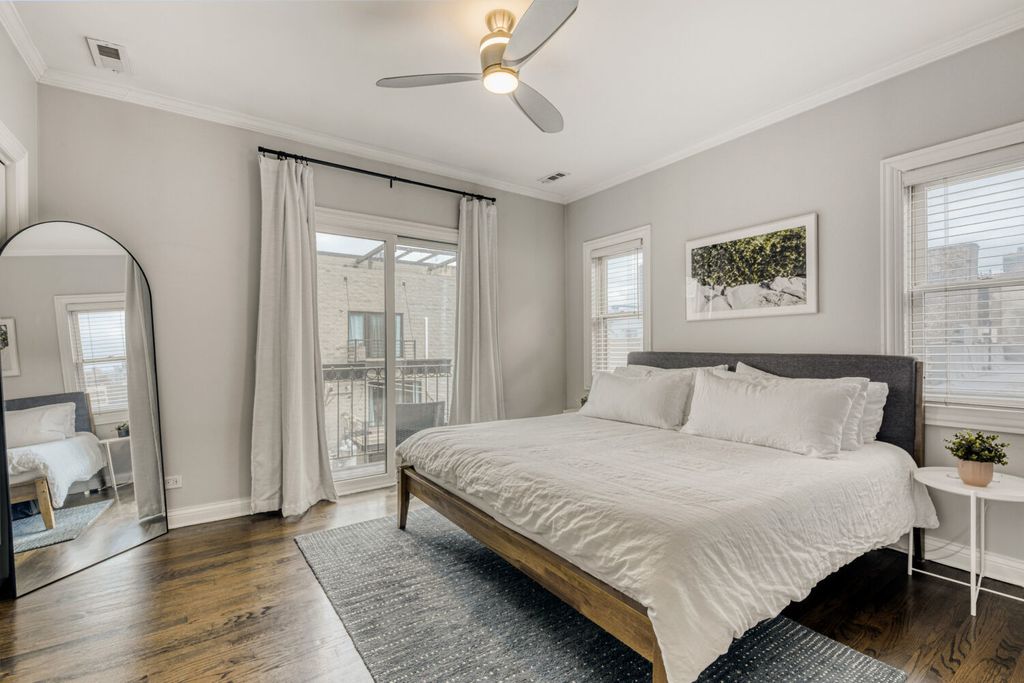 Urban Oasis Penthouse in Lakeview! Welcome to this lovely home, a perfectly nestled urban oasis in the heart of one of the city's most vibrant neighborhoods. Experience comfort and charm in this 2-bedroom, 2-bathroom penthouse where an elevator opens directly into your unit. Step into a welcoming foyer and an open, light-filled floor plan ideal for both relaxing and entertaining. Warm hardwood floors and expansive windows create a perfect tree-top setting throughout. The kitchen is a standout, featuring white cabinetry, marble countertops, classic subway tile backsplash, pantry and a convenient breakfast bar. The versatile living and dining area allows for a variety of furniture arrangements and showcases a gas fireplace. The primary suite includes organized closets, a spacious marble-finished bath and overlooks a private balcony. A second full bath is conveniently located across from the comfortable guest bedroom. Additional highlights include in-unit laundry, generous storage space, common patio area, and garage parking with elevator access straight to the unit. This well-maintained building has seen numerous updates: tuckpointing and sealing (2018), tear-off roof (2015), new garage door (2025), gutter warmers (2023), new garage sump pump with heating element (2026), new sewer pipe (2023), new entrance lock and knob (2025), and two new back stairwell windows (2022). Ideally located, this exceptional home combines urban chic with cozy neighborhood living-just steps from transportation, grocery stores, restaurants, boutiques, local taverns, and the lakefront. (See additional information for a full list of features.)