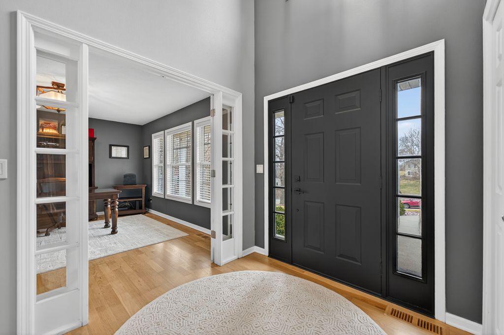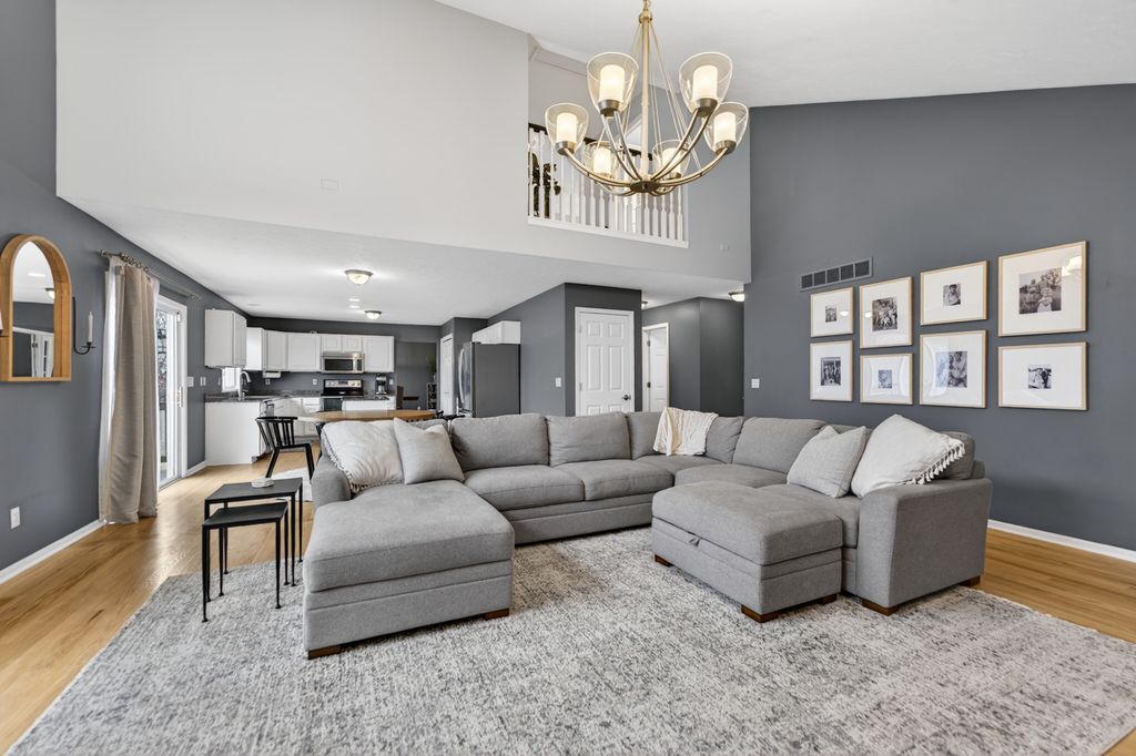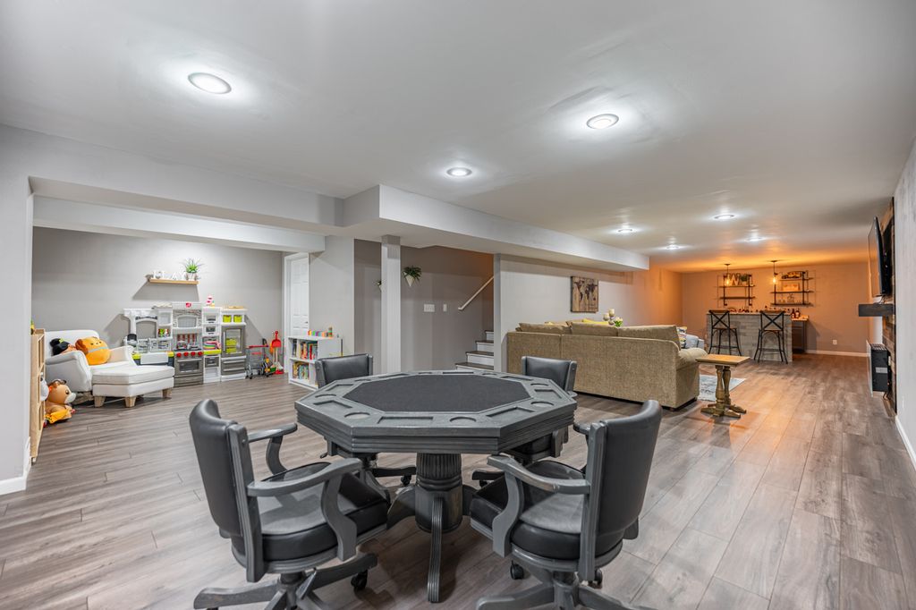 Extremely well maintained and updated 2-story home with finished basement. This home has 3,200 SQ FT of finished living space, which includes: 3-bedrooms, 2.5 bathrooms, 3-car attached garage, large great room with vaulted ceilings which opens up to the kitchen and dining area, formal dining, office/den, and a huge family room in the basement with a dry bar. This house sits on a 0.41-acre, irrigated lot with a large deck and a back yard that backs up to the beautiful red barn golf course. The kitchen offers plenty of granite counter space, cabinetry and stainless-steel appliances. Wood burning fireplace on main level and an electric fireplace in lower level. Gorgeous hardwoods floors throughout the main level, fresh white trim, and 6-panel solid doors. The primary bedroom includes vaulted ceilings, large windows for plenty of natural light, double walk- in closets, deep soaker tub, and double sinks. Close to downtown for all of your favorite bars, restaurants, shopping, and Rockton days music.