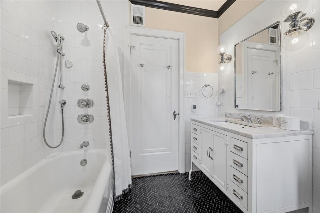 Crafted with enduring materials - brick, limestone, slate, copper, and steel beam construction - this distinguished River Forest home has been thoughtfully renovated to honor its vintage character while delivering every modern comfort. The result is a residence of rare integrity and warmth. 4 generously proportioned bedrooms occupy the entire 2nd floor, anchored by a serene primary suite complete with an ensuite bathroom and walk-in closet. Both second-floor bathrooms were taken to the studs and reimagined with heated floors, new tile, designer lighting, and high end plumbing fixtures - all executed with impeccable sensitivity to the home's era by celebrated local designer and project manager Scully Interiors. Discover plenty of thoughtful storage throughout with 2 hall closets, a floor-to-ceiling cedar-lined closet, a dedicated entertaining closet, craft closet and even a game closet. Abundant natural light and rich hardwood floors flow through the main level, where the living room wood-burning fireplace creates a natural gathering spot in the cooler seasons. French doors on either side of the living room open to two porches that seamlessly extend the home's living space through the warmer months. The front porch, appointed with a new stone floor, limestone border, and custom awning, is an ideal summer retreat - perfect for socializing with neighbors or settling in with a good book. The rear elevated covered porch, with ample seasonal storage integrated below, overlooks a deep, private backyard. The eat-in kitchen is the crown jewel of the home: a complete gut renovation that unified the original breakfast room, butler's pantry and kitchen into one open, seamless space. Soapstone and marble countertops, stainless steel appliances, and generous cabinetry deliver both beauty and function - equally suited for everyday cooking and effortless entertaining. Every detail reflects Scully Interiors' signature approach: elevated design in full dialogue with the home's 1942 heritage. If you want to switch to outdoor dining, entertaining, and relaxing, you can enjoy a beautiful gathering on the large paver patio. The lower level was fully transformed into several inviting finished spaces, another amazing Scully Interiors' project. The 21 x 21 family room is as cozy as it is versatile - custom full-wall cabinetry, a wood-burning fireplace, and dedicated space for TV, music, and a craft area with its own craft closet make this a true destination floor. A separate laundry room with washer, dryer, utility sink, and spare refrigerator offers exceptional everyday convenience, while a dedicated storage room and utility room round out the lower level. Electrical, plumbing, and lighting systems have all been updated throughout. Nestled in the middle of a stunning block where neighbors share open backyards and block parties are a beloved tradition, this home offers the very best of River Forest community living. Walk to top-rated River Forest schools and parks. Easy access to both O'Hare and Midway airports. Minutes to downtown Chicago and the broader suburbs - you are genuinely at the center of it all. *Showings start Friday, March 20th*