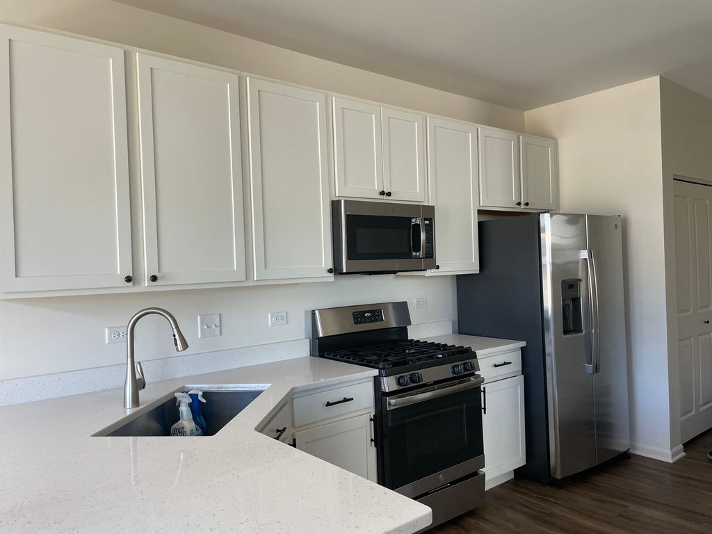 Spacious home in Stonegate! Beautiful 3-bedroom, 2.5-bath end-unit two-story duplex offering modern design and high-end finishes. The inviting family room features a cozy fireplace, perfect for relaxing or entertaining. The fully equipped kitchen includes quartz countertops, a farmhouse undermount sink, Aristokraft Benton white cabinetry, and stainless steel GE appliances. Additional features include LED surface-mounted lighting in hallways and bedrooms, modern two-panel interior doors with colonist trim, and durable vinyl plank flooring in the kitchen, family room, foyer, bathrooms, and laundry room. The home also includes a garage door opener and 30-year architectural shingles. Homes in Stonegate are WiFi CERTIFIED, ensuring strong connectivity throughout the home, and come equipped with Smart Home Automation, including a Ring doorbell, Schlage Smart Lock, and WiFi thermostat. Located in a great location in Manhattan, this home offers comfort, style, and convenience. Don't miss this fantastic opportunity!