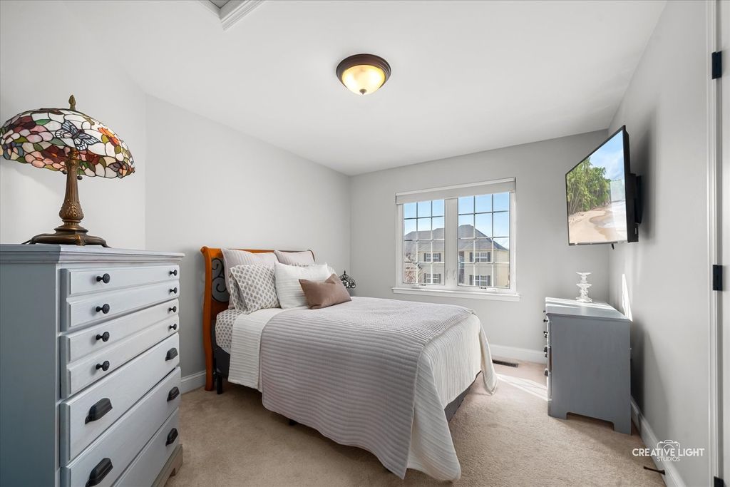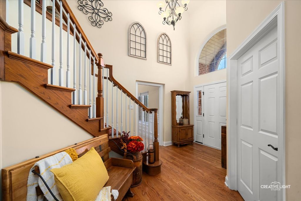 Nestled along a tranquil pond in the highly sought-after Highland Woods community, this inviting two-story brick-front home offers the kind of lifestyle people dream about. From the moment you arrive, the beautifully maintained seasonal landscaping and peaceful water views create a sense of calm that only grows more magical as the seasons change. Step inside to a soaring foyer where a graceful curved staircase welcomes you home. Sunlight fills the elegant living and dining rooms, where nine-foot ceilings, crown molding, and plush carpeting create the perfect setting for both everyday living and special gatherings. At the heart of the home, the kitchen is designed for connection; featuring granite countertops, extended cabinetry, a pantry, and a bright breakfast area that flows effortlessly into the family room. Here, a striking stone-faced fireplace and oversized picture window frame the stunning pond views, making this the perfect place to unwind at the end of the day. A main-level bedroom adds flexibility for guests, a home office, or multi-generational living. Upstairs, three spacious bedrooms and a versatile loft provide room to grow, work, or relax. The spa inspired primary bedroom is complete with a soaking tub, separate shower, and double-sink vanity. The partially finished basement offers even more living space, filled with natural light from its abundant windows; ideal for a recreation area, home gym, or future customization to suit your needs. Outside, the backyard was designed for making memories. A brand-new patio, cozy fire pit, and elegant wrought-iron fence create the perfect setting for summer evenings, morning coffee, or simply taking in the peaceful pond views. Life in Highland Woods means more than just a beautiful home, it's a true resort-style community. Residents enjoy a stunning clubhouse, pool, and exceptional amenities, all within the District 301 school system.