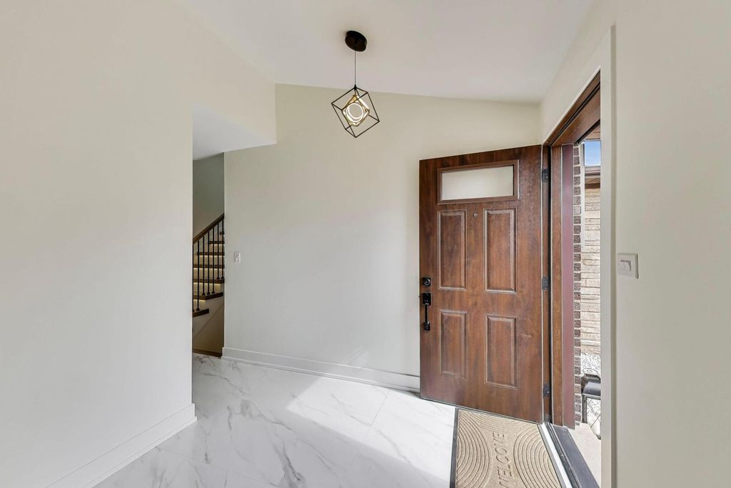 Beautifully remodeled spacious and bright home on a beautiful tree-lined street in Mt Prospect. The new kitchen features custom modern cabinetry, new countertops, premium appliances, range, dishwasher, sink, and modern lighting. The remodeled bathroom offers a beautiful custom vanity with lighted mirrors and elegant finishes. Major improvements include a new roof, skylights, refinished hardwood flooring in the family and dining rooms, beautiful wide plank engineered hdw flooring throughout the second floor, and new laminate wide plank flooring in the lower-level family room, large-scale tile in the hallway and kitchen, fresh paint,newer windows throughout, new interior and some exterior doors, and new interior and exterior light fixtures. The white oak staircase with iron spindles and custom underlighting truly makes a stunning statement. Additional highlights include a custom built-in credenza with wine cooler and a beautiful fireplace. Great flow throughout the home. Heated extra-wide garage with custom cabinetry and freshly painted interior, plus an extra-long, wide driveway. Outside, the patio creates the perfect open-air space for dining al fresco, entertaining, or relaxing outdoors. Conveniently located near Woodfield Mall, O'Hare, major interstates, shopping, dining, and award-winning Prospect High School. Truly turn-key and move-in ready.