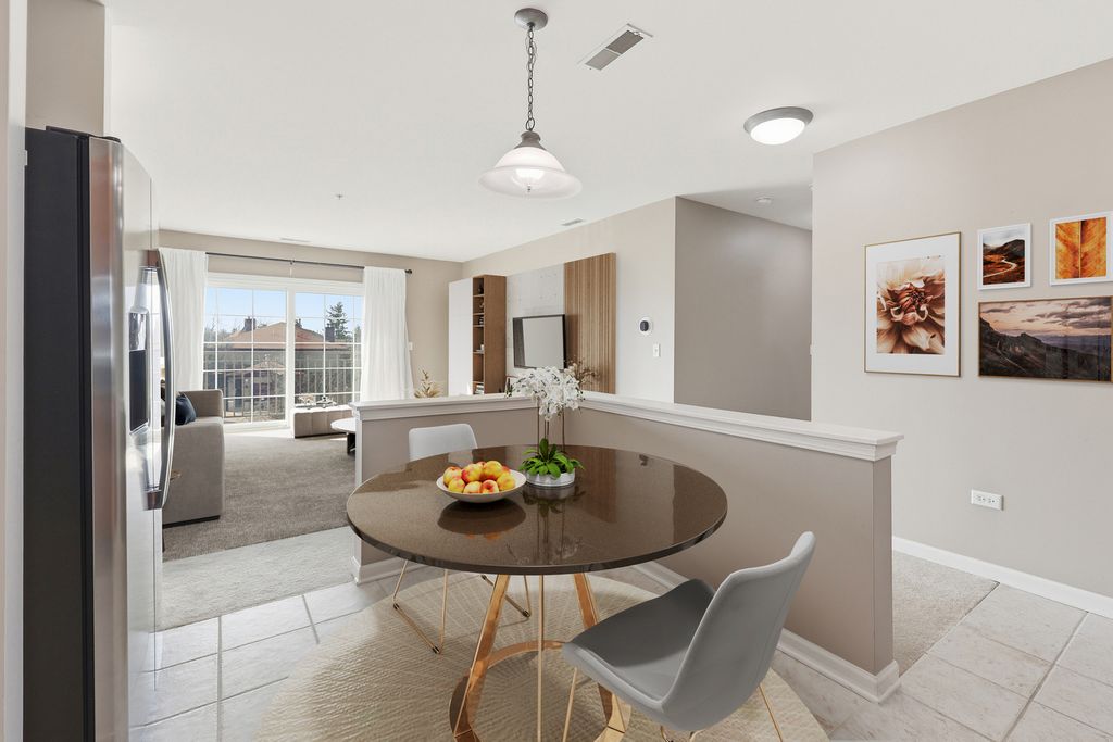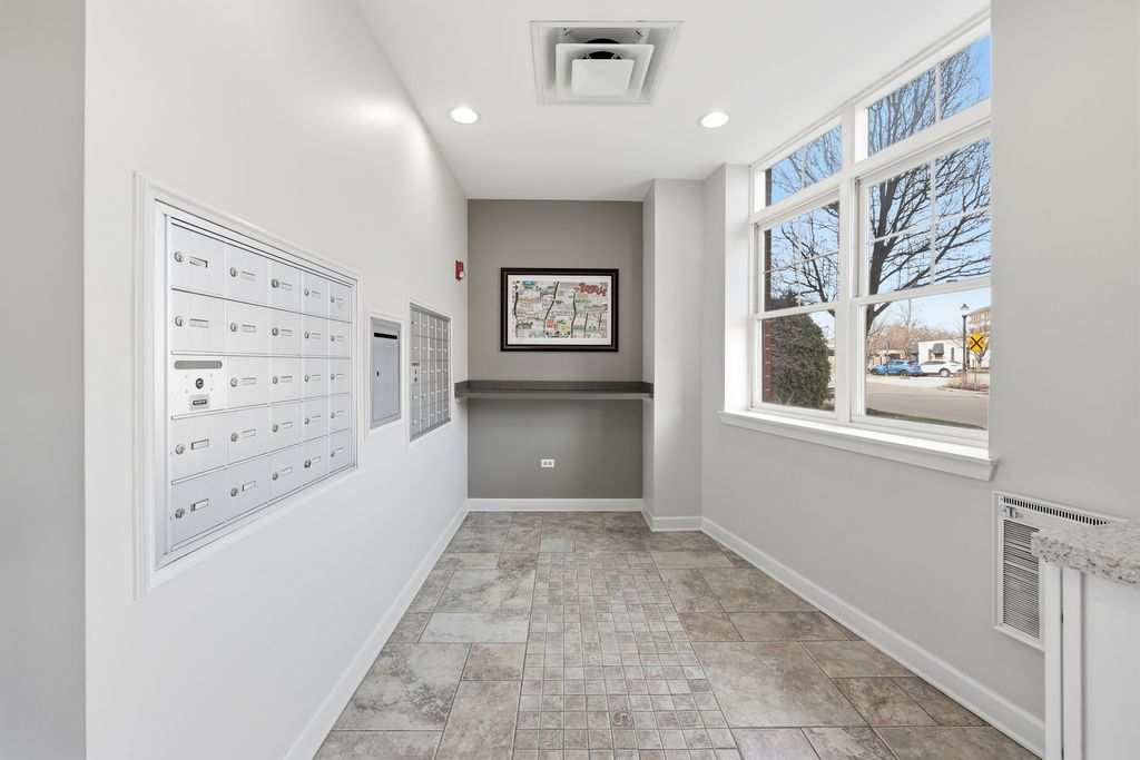 Welcome to Main Street Station in the heart of downtown Roselle! This clean and bright 4th-floor condominium offers the perfect blend of comfort, convenience, and low-maintenance living in one of the area's most desirable buildings. Step inside to a welcoming ceramic tile entry with a large storage closet and discover an open floor plan designed for comfortable everyday living and entertaining. The spacious living room is filled with natural light and opens to the west-facing balcony, the perfect place to relax and enjoy beautiful evening sunsets. The kitchen offers both functionality and charm with 42" cabinets, Corian countertops, and a table-space eating area. Six-panel doors and white trim throughout add a classic touch to the home. The primary bedroom suite features a large walk-in closet, ceiling fan with light, and a private bathroom with double vanity and walk-in shower. A generously sized second bedroom and full hall bath provide flexibility for guests, a home office, or additional living space. Additional features and updates include Marvin windows and sliding glass door (2015), new furnace and central air (2025), Ecobee smart thermostat, stackable washer and dryer (2025), stainless steel refrigerator (2020), and garbage disposal (2018-2019). This unit includes two deeded parking spaces-one indoor garage space with storage and one exterior parking space. The building is wired for cable TV by Xfinity/Comcast, and the association continues to maintain the property with recent improvements including parking lot repaved in 2025 and dryer vents professionally cleaned in 2025 (completed every two years). Enjoy a fantastic location just steps from downtown Roselle's dining, shopping, fitness studios, parks, and the Metra train station, making commuting and everyday convenience a breeze. The HOA provides added peace of mind by covering water, garbage, exterior maintenance, lawn care, and snow removal. If you're looking for a bright, move-in ready condo with a walkable downtown lifestyle, this one checks all the boxes. Schedule your private showing today and see why this Main Street Station condo could be the perfect place to call home!