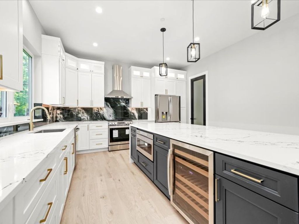 New construction. Never occupied. Master bedroom with Master bath and walk in closet. Three bedrooms with double closets each. Real hardwood flooring throughout. Spacy master bath with double shower. Study room could be 1st floor bedroom. All baths ceramic flooring and quartz counters. Skylight in full bath, double sink and quartz surround oversized tub. Top of the line kitchen fully equipped with SS appliances with large pantry and wine cooler included. Oversized kitchen island with build in Sharp microwave and wine cooler. Decorative electric fireplace in family room. 19 ft foyer and the oak stairway to the second floor with matching landing. 1st floor ceiling 10 ft. Sliding door to 20x16 patio. Two laundry rooms with a set of Samsung washer and dryer -1st floor. Separate utility room with American Standard zoned furnace and tankless hot water heater. Fire protection sprinklers system throughout. Entire property prewired and ready for security system. Sump pump and Radon gas vent installed as required by city code. Three car attached garage with unique soundless electric door openers. The garage is equipped with electric car charging outlet. Casement high energy efficiency windows throughout. Upgraded all doors and locks. The foundation built in compliance with FEMA requirements under inspection of the city of Justice engineer and licensed flood elevation engineering company.