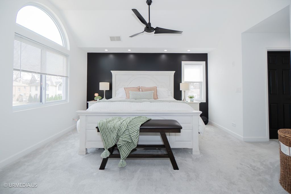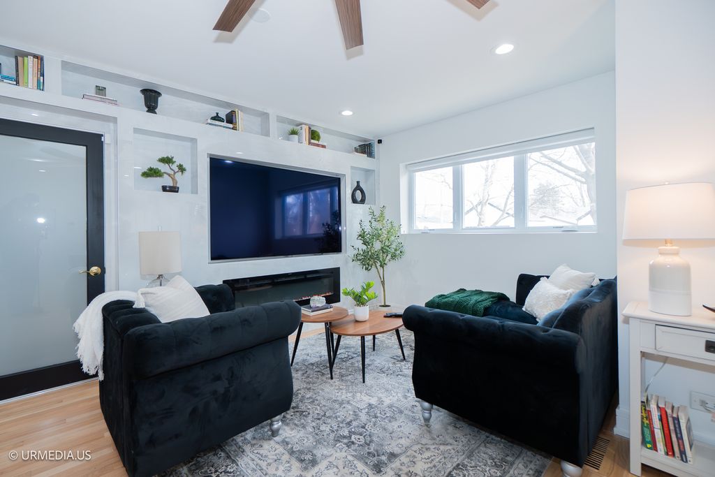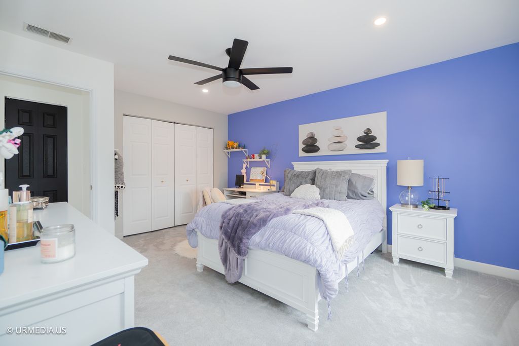 Gorgeous and extensively updated Barndominium-inspired Edgebrook 5-bedroom, 4-bath Colonial! This spacious home has been thoughtfully expanded and meticulously maintained, offering 4 bedrooms and 3 bathrooms on the second floor, including a generous primary suite with his and hers closets and a large private luxury bath with double vanities. The second bedroom features an en-suite bath, while a third full bath serves the remaining two bedrooms. A main floor bedroom and full bath provide flexible living options for guests or multigenerational needs. The heart of the home is the open-concept kitchen, featuring sleek wood cabinetry, granite countertops, stainless steel appliances, and a connected eating area that flows into the expansive great room. The family room features a stunning Italian ceramic fireplace with a custom TV build-out-perfect for entertaining. Extensive exterior updates include all-new Hardie board and Nichiha siding, brand-new double-hung vinyl windows, upgraded 1" exterior wall insulation for enhanced energy efficiency, new gutters with copper fascia, new exterior lighting, a new roof, and new public sidewalks. A 5' steel fence surrounds the front and south side of the home, while a newly built wood privacy fence encloses the backyard. The attached 3-car garage features brand-new garage doors and openers, offering both functionality and curb appeal. Located just steps from Wildwood School and Park, and within walking distance to local shopping, the Forest Preserve bike trail, and the Metra. Easy access to I-90/94 makes commuting a breeze.