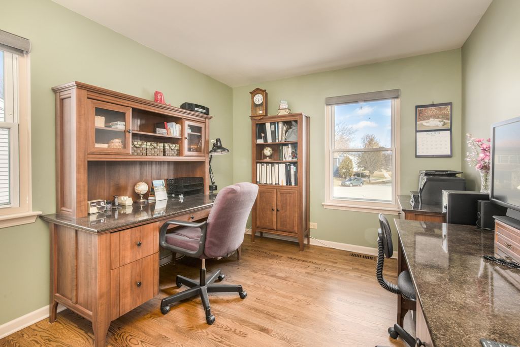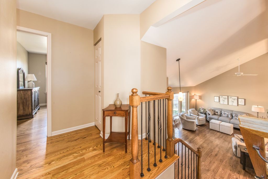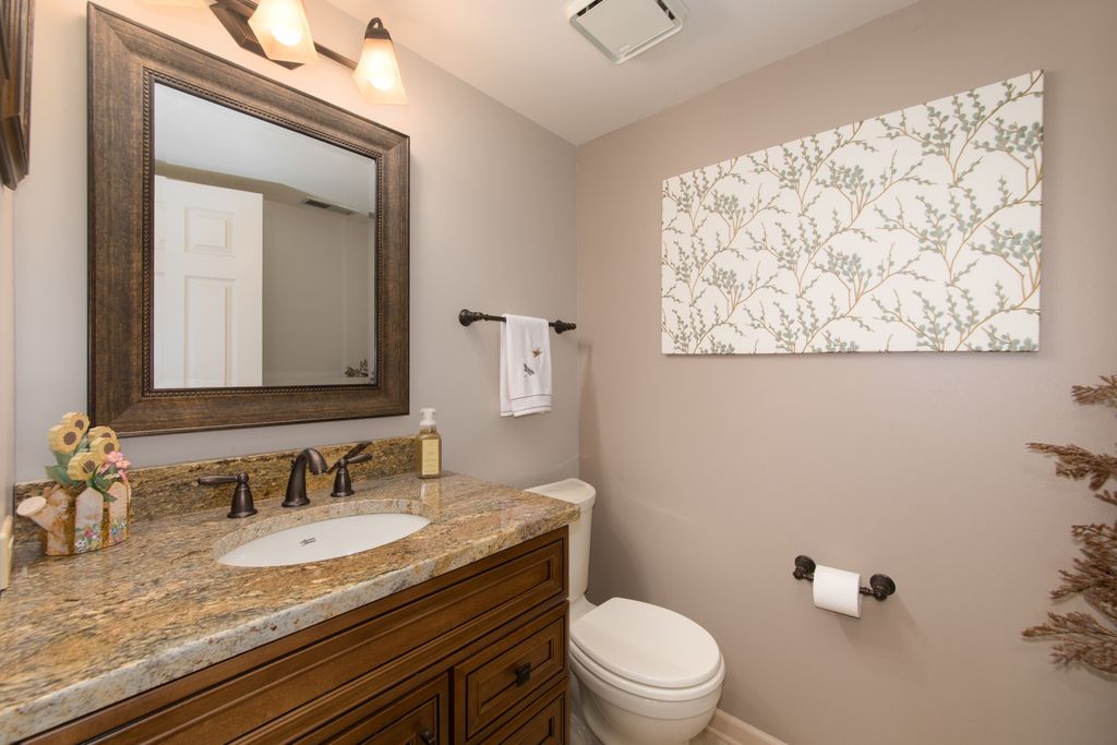 This beautifully finished split-level, tucked away in a quiet cul-de-sac, offers the perfect blend of style and comfort. As you step inside, you're greeted by stunning hardwood floors that flow seamlessly throughout the space. The kitchen showcases custom cabinetry, luxurious granite countertops, soaring vaulted ceilings, and sleek stainless steel appliances. Natural light pours into the living room through a charming bay window, the spacious dining area perfectly. The cozy family room beckons with its elegant stone fireplace, featuring gas logs, and a French patio door that opens to the outdoor oasis. Retreat to the serene primary bedroom, adorned with vaulted ceilings and an updated ceiling fan for added comfort. The expansive full bath is a spa-like sanctuary, complete with custom cabinets, granite counters, an oversized tub, and stylish ceramic flooring. Upgraded vinyl replacement windows are fitted with stylish custom blinds. Step outside to bask in your beautifully landscaped yard, where a renovated paver-brick patio and entryway provide a perfect setting for outdoor gatherings and relaxation. Bristol Trails Park is only steps away. Your ideal home awaits!