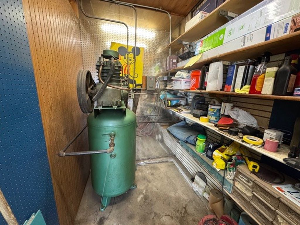 Wonderfully maintained MECHANIC'S DREAM in South Elgin! Garage has everything you could ever need! This isn't just a garage; it's a fully equipped, heated, and ventilated workshop. 80-Gallon professionally-wired commercial Air Compressor included with its own private utility room and on its own breaker box! Recently updated with a new door and custom lighting with built-in shelving and heavy-duty roller-bearing cabinets, this space offers professional-level organization for any project. BUILT-IN ENGINE HOIST TOO! As you step inside this cozy home, you're greeted by a bright living area with hardwood flooring and barn door pantry bringing you to the heart of the home. Kitchen remodeled in 2021, a stand out featuring a butcher's block peninsula, soft-close cabinetry with slide outs, farm sink, beautiful custom backsplash, and all stainless steel appliances. Off the kitchen sits an inviting 4-seasons room with hardwood flooring, tons of natural lighting, and a cathedral ceiling - the perfect retreat for relaxing! The 3 bedrooms all have hardwood floors and ample closet space. The spacious fully finished basement includes a bonus room and full bathroom. Recently re-stained 2 tier deck brings you to a cozy backyard, featuring a regularly-maintained pool with new heater, and a 2-story outbuilding with 8' ceilings and engineered maintenance-free siding. Brand new HVAC with humidifier, new water heater, and new Kind Water System salt free, no maintenance water softener including water filtration system!