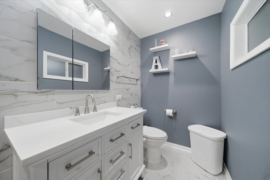 Meticulous in every way with Grayslake Schools! At every turn, buyers will see quality workmanship. Outside you will find masonry sidewalks leading to a forever with deck low voltage lighting. Newer fence and Pergola allows you to entertain with privacy. Stone flower beds are ready to bring out the gardener in you. Stone and brick exterior on the home and garage sides compliment the no maintenance vinyl siding. Newer architectural shingle roof. The detached heated garage has Performance cabinets for all your mechanic tools!! Living room features hardwood floors, brick, gas fire place, canned lights and crown molding. The stunning kitchen has SS appliances, granite counters and island! Tiled guest bathroom has vaulted ceiling and skylight. Master bedroom bath has wall to wall, tasteful grey ceramic tile. The finished basement has additional bedroom and full bathroom with black and white tile. Large family room has glass block bar and earth tone CT flooring. Exercise room can double as an office/library. Even the massive laundry room has tile flooring and wall of storage shelves. Way too many features in this home to list. Sellers may consider including some furnishings, barstools, mounted TVs, sound system, etc... Short drive to shopping, park district trails, forest preserve and golf course! A dream home awaits some lucky buyer!! Sellers are retiring to warmer climate!