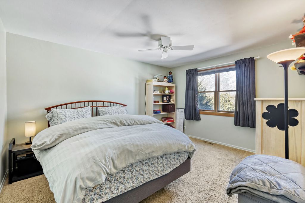 Welcome to this beautifully updated 3-bedroom, 2.5-bath home ideally situated in the heart of Bloomingdale. This light-filled home features a spacious living room with a bay window, dining room, and a stunning Great Room addition with vaulted ceilings that provides additional living space and picturesque views of the lushly landscaped backyard.The renovated kitchen showcases white cabinetry, stainless steel appliances, quartz countertops, a convenient serving area/coffee bar, and a large pantry. Gorgeous porcelain wood-plank flooring runs throughout the entire first floor and lower level. The lower level offers a comfortable family room with heated floors and a wood-burning fireplace-perfect for cozy evenings at home. Upstairs, the primary bedroom features a renovated private bath and a wall of closets. Two additional generously sized bedrooms and an additional hall bath complete the second level. Enjoy outdoor living on the brick paver patio overlooking the beautifully landscaped yard. So many updates include: humidifier (2024); dishwasher (2023); refrigerator and range (2021); porcelain tile flooring on main level (2021); full kitchen renovation (2021); main water shutoff replacement (2021); solid-core interior doors (2019-2020); concrete driveway and sidewalks (2020); furnace (2020); heated porcelain tile flooring in lower level (2019); washer and dryer (2019); primary bathroom renovation (2017); and new water heater (2017). Great Bloomingdale location within highly rated District 13 and Lake Park High School District 108. Walking distance to DuJardin Elementary, Westfield Middle School, Bloomingdale Park District, Oasis Water Park, the library, and Circle Park/Westlake Park. Convenient access to highways, Metra, shopping, restaurants, Bloomingdale and Medinah Golf Clubs, Meacham Grove Forest Preserve, Mallard Lake, and everything Bloomingdale has to offer.