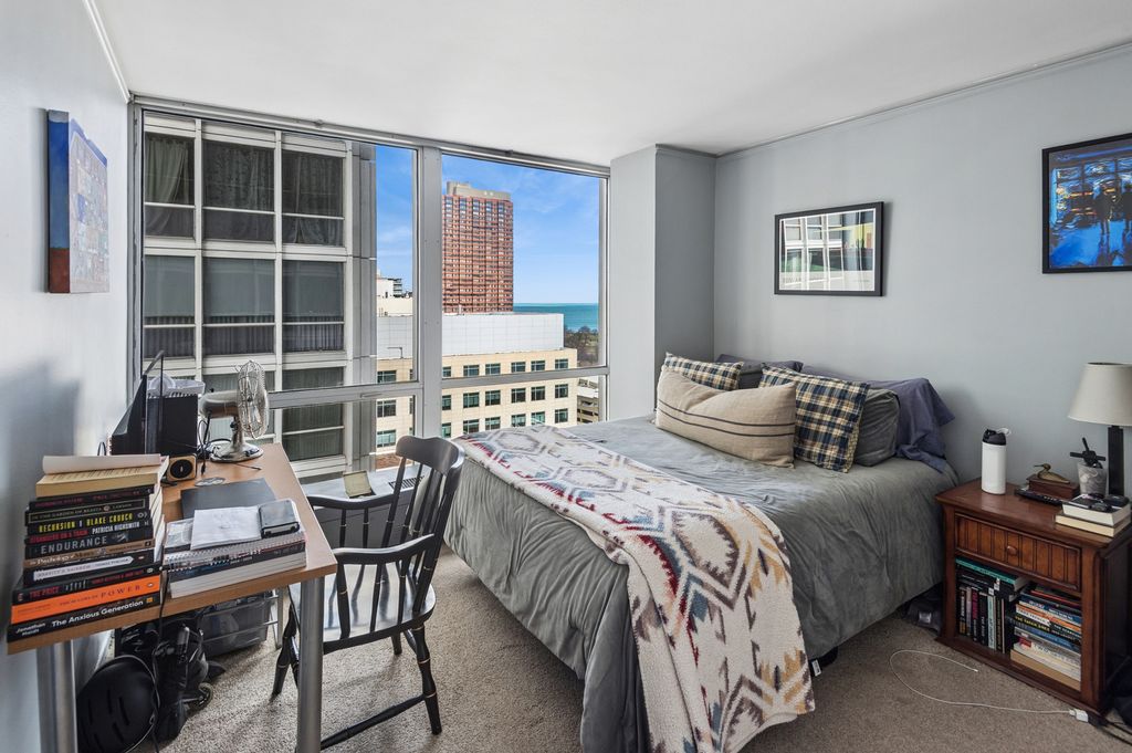 Rarely available 3 bedroom corner unit at Mies van der Rohe designed building. Commonwealth Plaza is a full amenity building with an exercise room, outdoor swimming pool, party room, and 24-hour door staff. This corner, high floor condo has Northeast views of the lake through floor to ceiling windows as well as forever western views. Steps away from Lincoln Park, transportation, and restaurants. Rental parking for one car is guaranteed with the possibility of an additional spot.