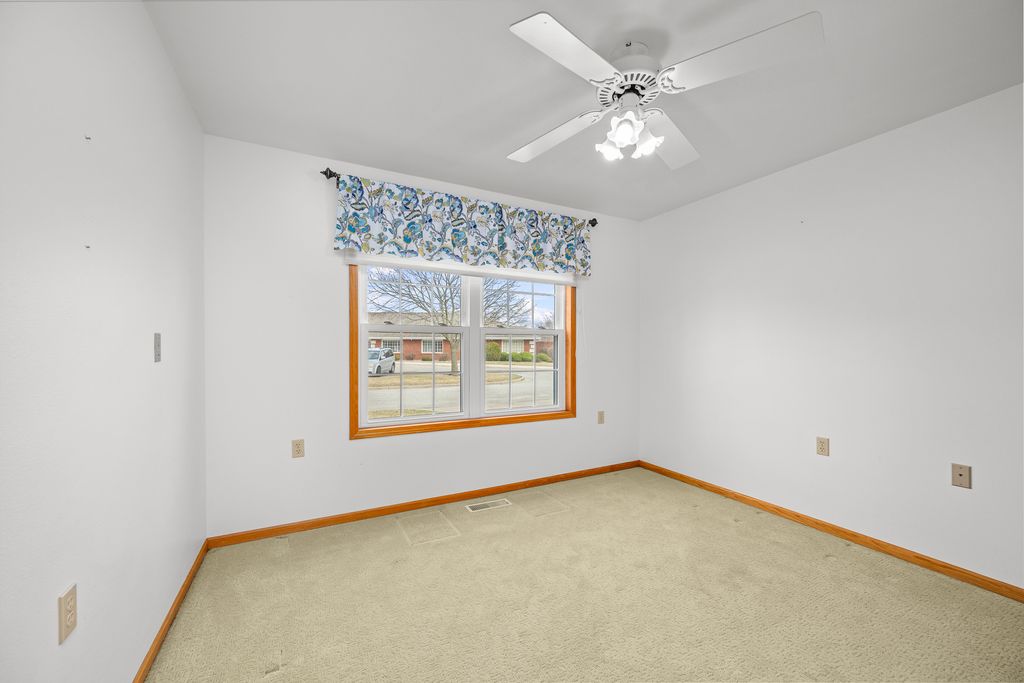 This 2-bedroom, 2-bath villa offers a bright, open layout with vaulted ceilings, an oversized dining area, and an additional sitting room that leads out to a maintenance-free deck for outdoor living space. The kitchen features hard-surface countertops, and recent updates include the water heater, water softener, furnace, air conditioner, carpet, and wood flooring-all updated within the last five years. The Villas is a 55+ community offering a variety of floor plans and a lifestyle designed for convenience and engagement. Amenities include scheduled group transportation, wellness programs, social events, access to a beauty/barber shop, optional meal services, and maintenance-free exterior living with lawn care and snow removal.