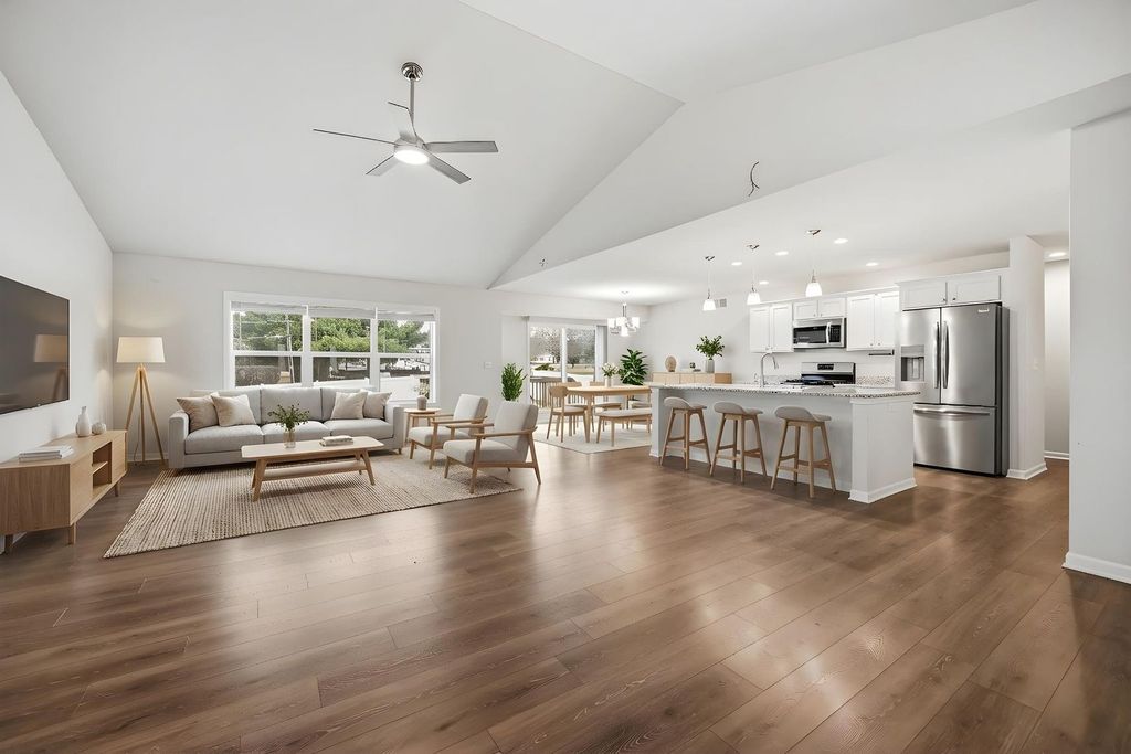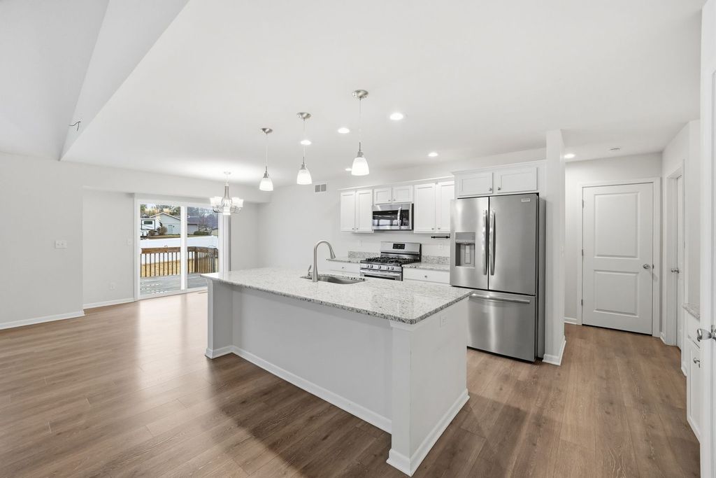 Built in 2021, this like-new modern ranch home offers spacious single-level living and is move-in ready. The open-concept main level features three bedrooms and two full bathrooms with an abundance of natural light and stylish finishes throughout. The kitchen is equipped with granite countertops, sleek stainless steel appliances and a generous size island making it the perfect place to cook and entertain. If the nearly 2,000 square foot main level isn't enough, the basement has limitless potential with an additional bathroom rough-in, finished bedroom, and plenty of storage space. Step outside and enjoy the deck and newly laid concrete patio, ideal for outdoor dining and relaxing. The recently installed white vinyl privacy fence creates a secluded atmosphere to enjoy your time outdoors. Hot tub, water softener, and filtration stays with the property. 3-car garage. Immediate occupancy possible.