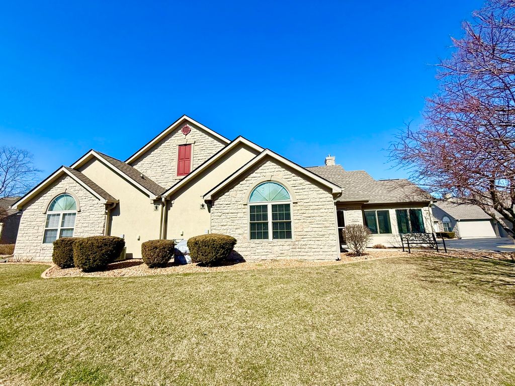 Welcome to Heritage Club Villas, a beautifully maintained ranch townhome-style condo offering easy, comfortable living in a peaceful 55+ community. This move-in ready 2-bedroom, 2-bath home features an open layout with vaulted ceilings, wood and wood-laminate flooring, and a cozy gas fireplace with Heatilator. The updated kitchen includes stainless steel appliances, quartz countertops, a breakfast bar, and abundant workspace-perfect for everyday living or entertaining. A bright four-season sunroom extends the living space year-round. The primary suite offers a private bath and generous walk-in closet, while the split bedroom design provides privacy for guests. The second bedroom is spacious and versatile. Enjoy the convenience of an attached 2-car garage and private driveway, along with recent updates to the appliances, furnace, and air conditioning. Residents enjoy an active yet peaceful lifestyle with access to the community clubhouse, outdoor pool, and exercise room. (55+ community; reserve for under-55 owners not met as of list date.) A truly well-cared-for home that is ready for its next owner.