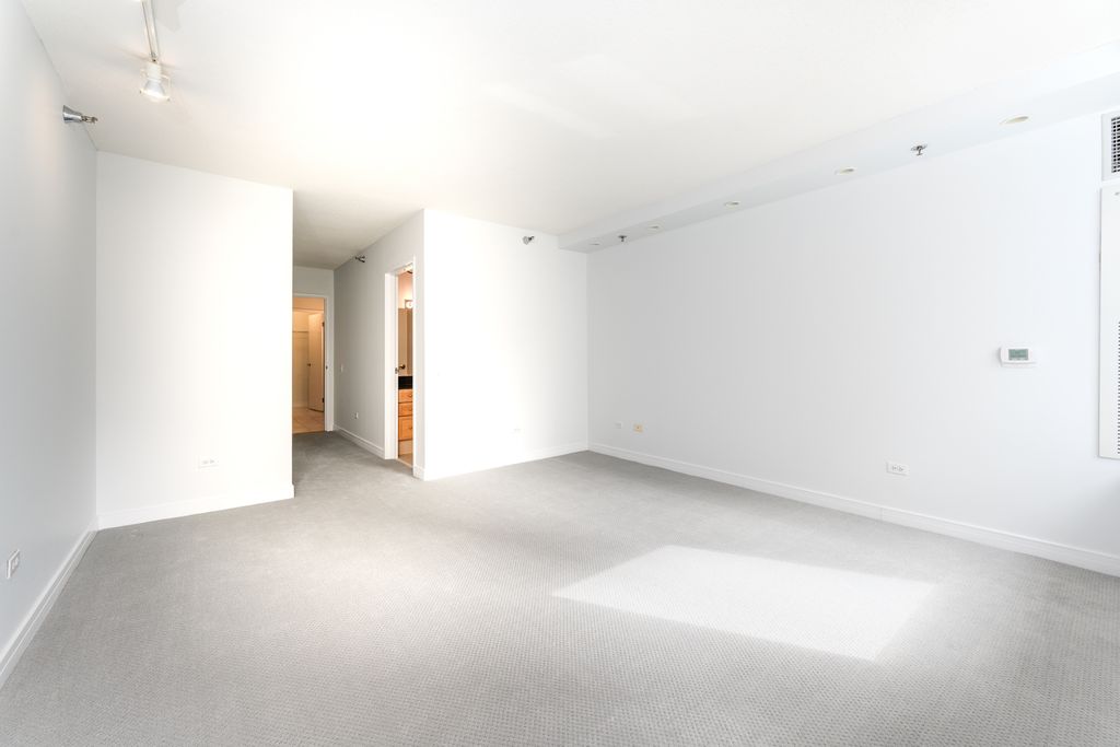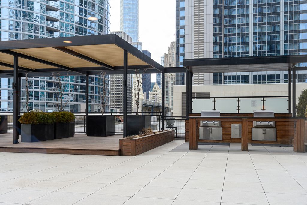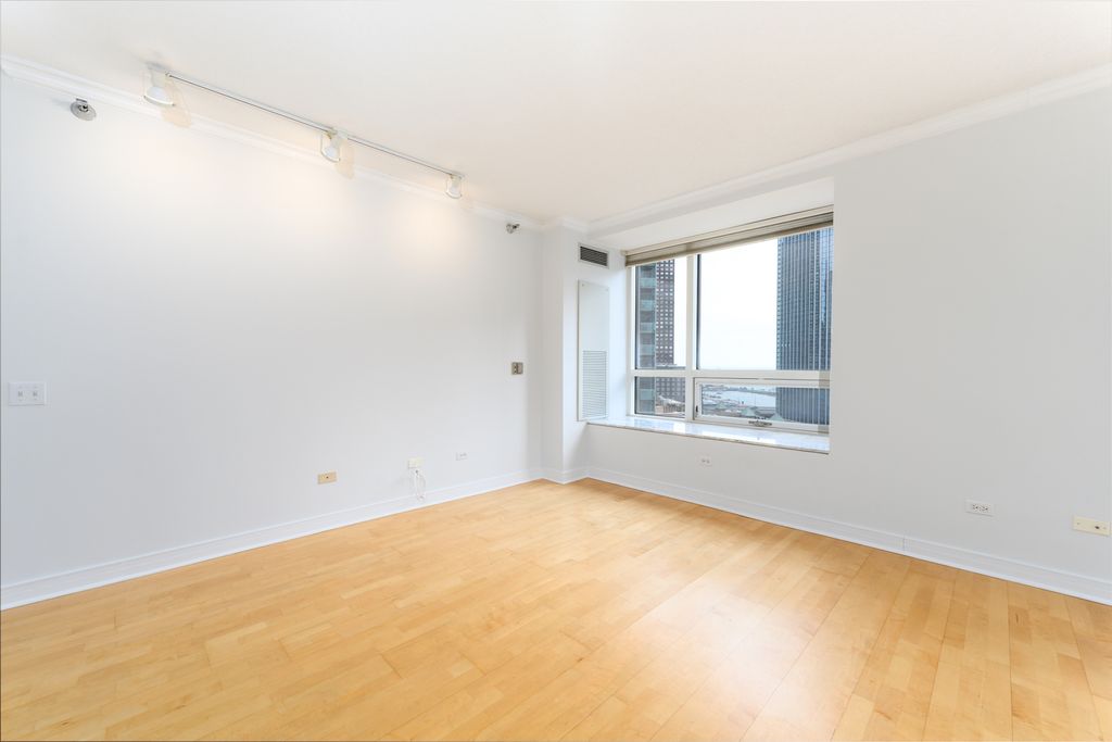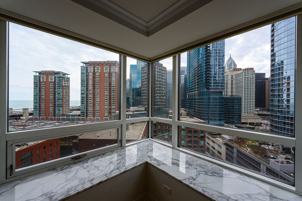 Sunny corner unit with amazing views of lake & city! Rarely available "07" tier which has premier views and natural light. The main living room features hardwood floors, big windows, and an open kitchen/living concept. Kitchen was fully renovated with luxe finishes at every turn - custom upper bracket cabinetry, integrated Miele fridge and dishwasher, Bosch range, ultra thick stone tops with matching slab backsplash. The primary suite offers a large bedroom, attached to bath, and generous walk-in closet. Second bedroom is off the main hall and features a custom built-in bookcase. Hall bath is located quietly around the corner from living space. Large entry closet and additional storage outside the unit. HOA is low given square footage and building is superbly managed! Fantastic location just steps to Northwestern University, NW Medical Campus, Target, Whole Foods, Walgreens, AMC Theater, and countless shopping or dining. Parking in the building is rental only starting at $335/month. Come see your beautiful new home!