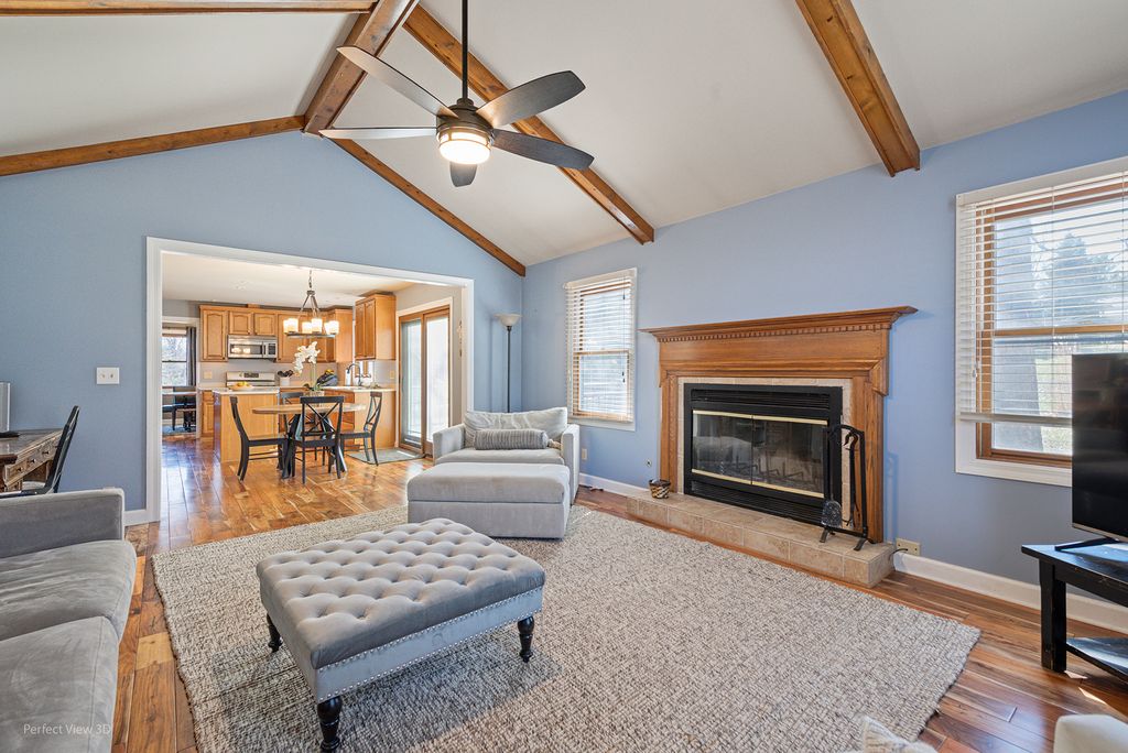 This inviting 5 bedroom, 3.1bath home sits on a peaceful 1 acre lot that feels like country living while still being close to everything. Inside, an open and airy living room connects seamlessly to the dining room, and the kitchen offers upgraded cabinetry and an eat-in table space. The family room's vaulted ceiling and fireplace create the perfect gathering spot. Enjoy newer acacia hardwood floors throughout the main level and neutral wall colors. Master Bedroom has an ensuite updated bath. Hall bath is also updated. The 5th bedroom is a great option for playroom, gameroom or gym. There are lots of pull out cabinets and even built-in twin bunk beds. The finished basement expands your living space with a large recreational area with luxury vinyl flooring and an enclosed room with an egress window which will be great for a guest suite or a 6th bedroom. Outside, relax on the no maintenance deck or let pets roam in the wire fenced dog run. Property line extends well beyond the fenced area.