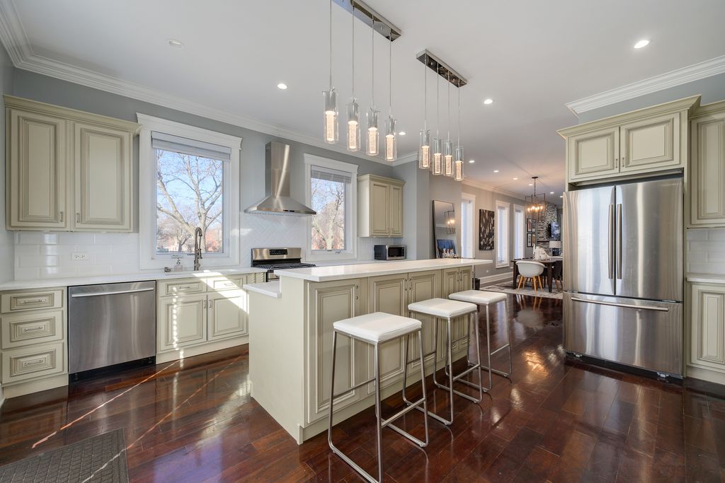 STUNNING AND RARE 34' EXTRA WIDE BRONZEVILLE RESIDENCE OFFERING NEARLY 3,000 SQUARE FEET OF EXPANSIVE LIVING SPACE, TIMELESS FINISHES, AND AN IDEAL LAYOUT DESIGNED FOR BOTH EVERYDAY LIVING AND ENTERTAINING. Perfectly positioned in the heart of historic Bronzeville, this impressive brick home is just moments from the train, Mariano's, the lakefront, major highways, and downtown Chicago. Inside, the home opens to soaring 10-foot ceilings, abundant natural light from oversized windows, a beautiful fireplace, and rich Brazilian cherry floors that flow throughout the main living areas. The oversized kitchen is the centerpiece of the home, with a large island and an open layout that connects seamlessly to the living and dining spaces, creating an ideal setting for hosting and gathering. Bathrooms are finished with elegant Carrara marble floors, while the primary suite offers a spa-like retreat with a dramatic rainfall shower and custom walk-in closet. Generously sized bedrooms and a spacious family room provide flexibility for guests, work, or relaxation. The home has been thoughtfully maintained, with refreshed interior finishes, updated rear access, and dual HVAC systems, including a brand-new furnace, providing efficient comfort throughout. Additional highlights include LED lighting, solid-wood doors, paver-brick walkways, a fenced yard, a large entertaining deck, and a two-car garage. Set within one of Bronzeville's most exciting and evolving neighborhoods, this home delivers space, character, and convenience in a truly exceptional location.
