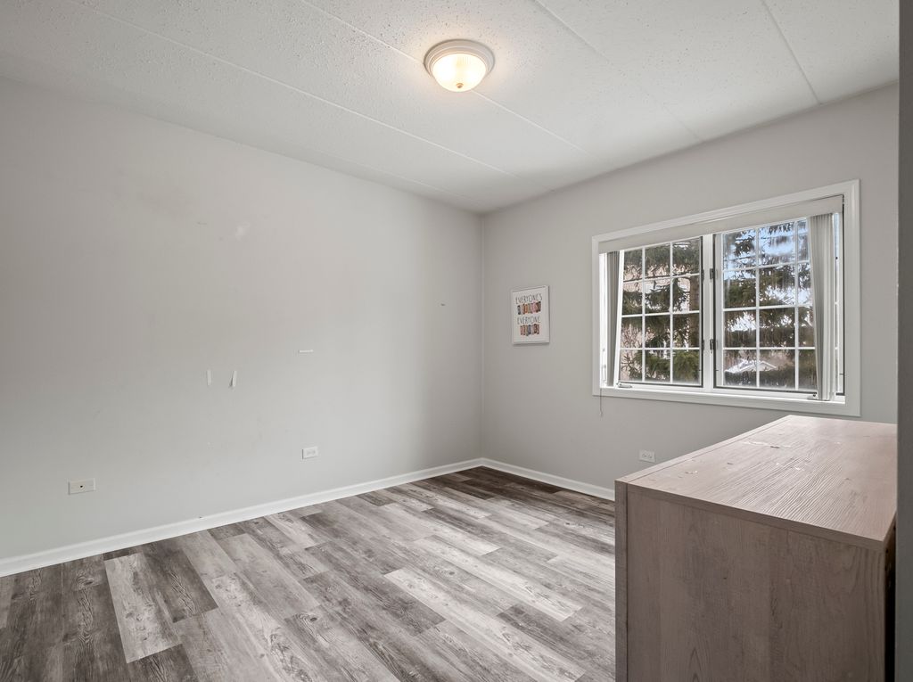 Welcome home to this beautifully maintained and move-in ready 2-Bedroom, 2-Bath Condo offering comfort, space, and an unbeatable location. This elevator-accessible building makes everyday living convenient and stress-free. Step inside to a bright, open living and dining room combination featuring a cozy fireplace - perfect for relaxing nights in or hosting guests. Double sliding glass doors lead to an extra-long private balcony with plenty of room for outdoor furniture, grilling, and entertaining. The kitchen is both functional and inviting with solid wood cabinetry and a charming breakfast nook surrounded by windows overlooking the peaceful courtyard - the perfect spot for morning coffee. The spacious primary suite offers oversized closet space and a private en-suite bathroom complete with a stand-up shower and Jacuzzi tub. The second full bathroom, conveniently located in the hallway, includes a full bathtub for guests or family. Additional highlights include: In-unit laundry, Recently updated vinyl flooring, Abundant oversized closet space, and Detached one-car garage. Located just minutes from Metro stations, the Convention Center, major highways, dining, shopping, schools, and all the entertainment Downtown Tinley Park has to offer, this home combines comfort with convenience. This one checks all the boxes - schedule your showing today!