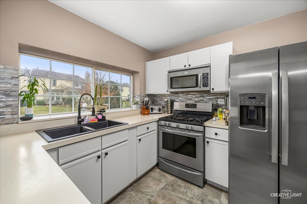 Beautiful, well-maintained townhouse featuring a newer roof (1 year old) and updated appliances (3 years old). The light and bright kitchen offers stainless steel appliances and a stylish backsplash, opening to a cozy family room with a fireplace. Sliding glass doors lead to a private patio, perfect for relaxing or entertaining. The spacious primary bedroom provides comfort and ample space, while the 2nd bedroom is a versatile space with a private bathroom. Enjoy an unbeatable location within walking distance to Heritage Lake, playground, soccer fields, volleyball court, and scenic walking paths. Conveniently located near shopping, dining, and everyday amenities.