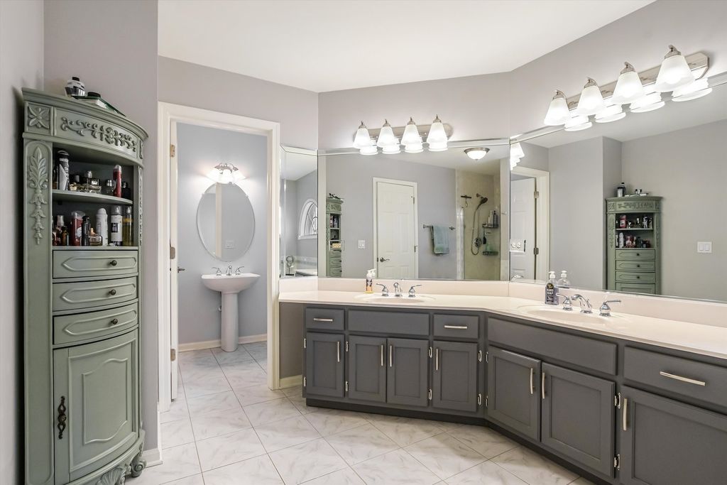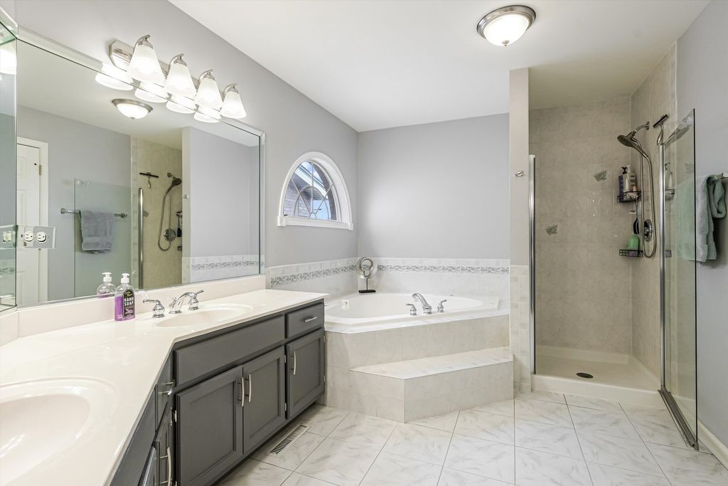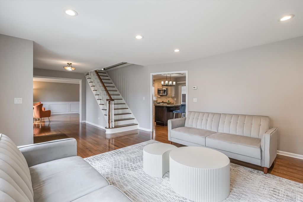 This stunning 4-bedroom, 3.5-bath brick home sits on a desirable corner lot and offers a stylish two-story layout perfect for families and entertaining. The main level features a spacious family room with a stone fireplace, open dining/living area, and a modern kitchen with island. The primary suite includes a walk-in closet and double-sink bath. A finished basement adds flexible living space, and the attached two-car garage offers added convenience. Enjoy the beautifully landscaped backyard designed for relaxation and gatherings.