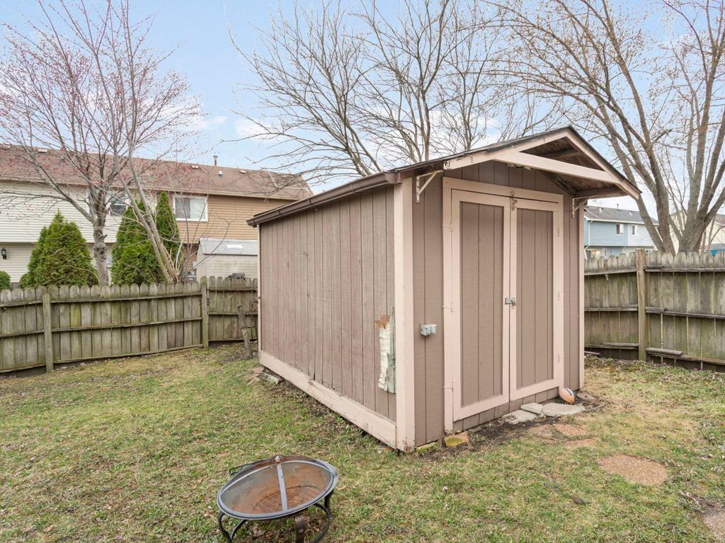 Bright, well-maintained 3-bed, 1.5-bath duplex unit in The Groves - perfect for first-time buyers or investors. Vaulted ceilings in the spacious living room flow into the dining area with sliding glass doors to a paver patio and private fenced backyard. Efficient galley kitchen with easy access to living/dining spaces. Upstairs features new hardwood flooring, new baseboards, new closet doors, updated recessed lighting and fresh interior paint throughout. Attached 1-car garage plus long driveway for two more cars. Rooftop solar panels lower energy costs; backyard includes a large storage shed. Low taxes, no HOA. Short walk to Discovery Park and Mallard Lake Forest Preserve.