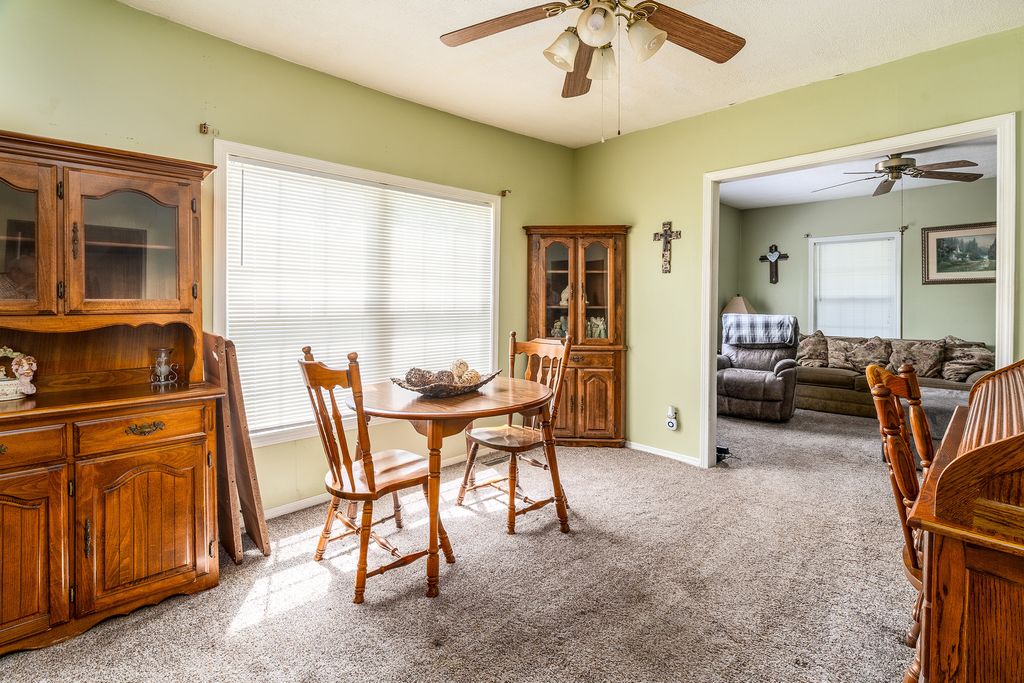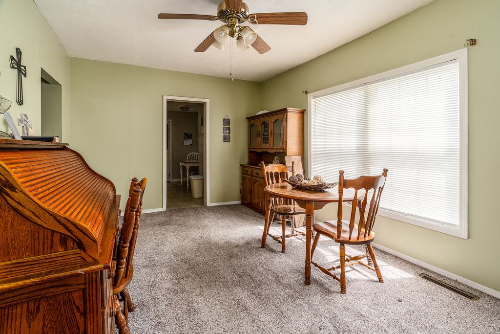 Bungalow-style home offering approximately 1,800 square feet of living space, located in town on an almost one-acre lot. Recent updates include a new roof on both the house and the detached two-car garage, fresh paint and newer carpet on the main level. The home features a roomy Eat-in Kitchen with ample cabinet space and separate Dining Room. The Laundry is conveniently located in the hallway near the full Bath. The Living Room, Primary Bedroom with 1/2 Bath and the Second Bedroom round out the main level. Upstairs includes two Bedrooms, a Common area suitable for a home office or additional living space, and a half bath. Furnace and H2O 2024
