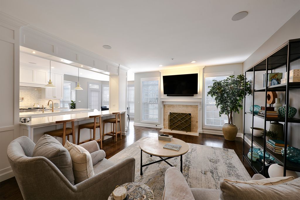 In over 25 years of selling high-end townhomes, this masterpiece is the best of the best. I have never seen better. From the moment you arrive, it is clear this residence is something truly special. Completely reimagined in 2023 with approximately $500,000 in curated improvements, this extraordinary home reflects a meticulous commitment to quality, craftsmanship, and timeless design. Every space has been thoughtfully considered and flawlessly executed, resulting in a home that feels both luxurious and effortlessly livable. At the heart of the home is the spectacular double-island kitchen, designed to impress both the culinary enthusiast and the avid entertainer. Featuring Wood-Mode fine custom cabinetry, the space is beautifully appointed with an exceptional appliance suite including Sub-Zero, Wolf, and Bosch. A charming breakfast bay provides the perfect setting for casual dining, while generous breakfast bar seating creates a natural gathering place. Just beyond, the inviting family room offers a warm and welcoming atmosphere. Anchored by a gas log fireplace, the space is enhanced by a custom-built wet bar complete with a Sub-Zero beverage cooler, making it ideal for entertaining or relaxed evenings at home. In contrast, the dramatic living room offers an entirely different architectural experience, highlighted by a soaring two-story ceiling, abundant natural light, and a stunning fireplace feature wall that creates an impressive focal point. The formal dining room adds a touch of classic elegance. An ideal setting for holiday gatherings, dinner parties, or intimate celebrations. The primary suite is a true private retreat, designed with comfort and luxury in mind. The spa-inspired bath features a remarkable whirlpool soaking tub, dual custom vanities, an oversized multi-head shower, and beautifully crafted built-in storage. The walk-in closet was fully designed and installed by California Closets, offering accessory lighting, custom drawer systems, and exceptional organization. In fact, every closet throughout the home has been thoughtfully customized by California Closets, ensuring both beauty and functionality in every space. Each of the home's four bathrooms has been completely reimagined, featuring Wood-Mode cabinetry and carefully selected designer finishes that elevate the home with a level of refinement rarely found. The finished lower level provides outstanding additional living and entertainment space. A welcoming recreation area is complemented by a custom-built serving bar and thoughtfully integrated amenities. For the ultimate entertainment experience, a dedicated home theater awaits, complete with high-end projection equipment and an immersive 5.1 surround sound system. Whether enjoying a blockbuster film or streaming your favorite series, the experience becomes truly cinematic. Additional highlights throughout the home further reinforce the exceptional level of detail and care invested in this property. Among them are one of the most beautifully designed custom laundry room you are likely to encounter, rich hardwood flooring throughout the main and second levels, a pristine epoxy-finished garage floor, striking designer lighting fixtures, and numerous mechanical updates including an updated furnace, air conditioner, and two tankless water heaters. Quite simply, this is a home where no detail has been overlooked and no corner left untouched. Truly a rare offering that seamlessly blends sophisticated design, modern comfort, and impeccable craftsmanship.