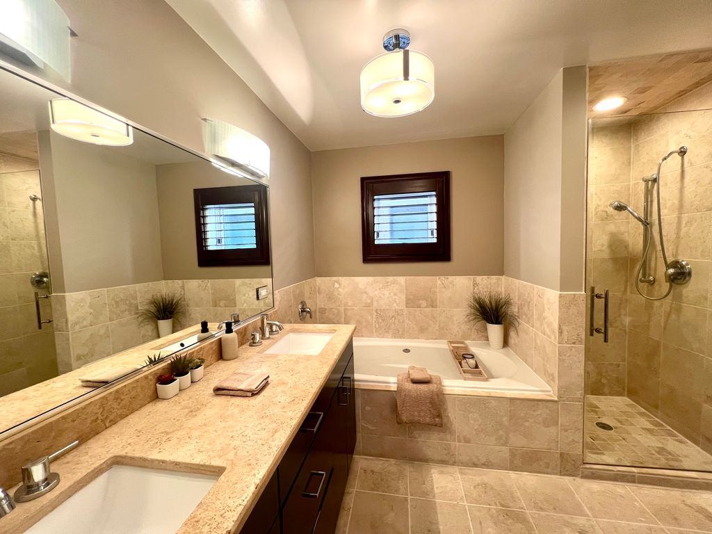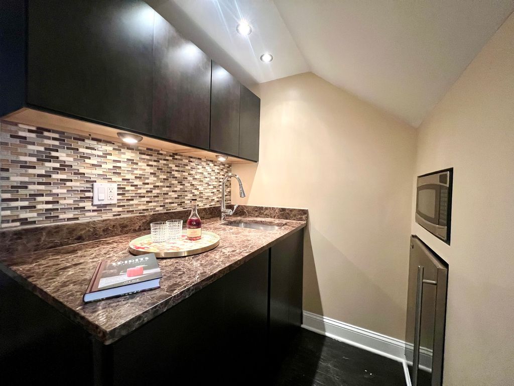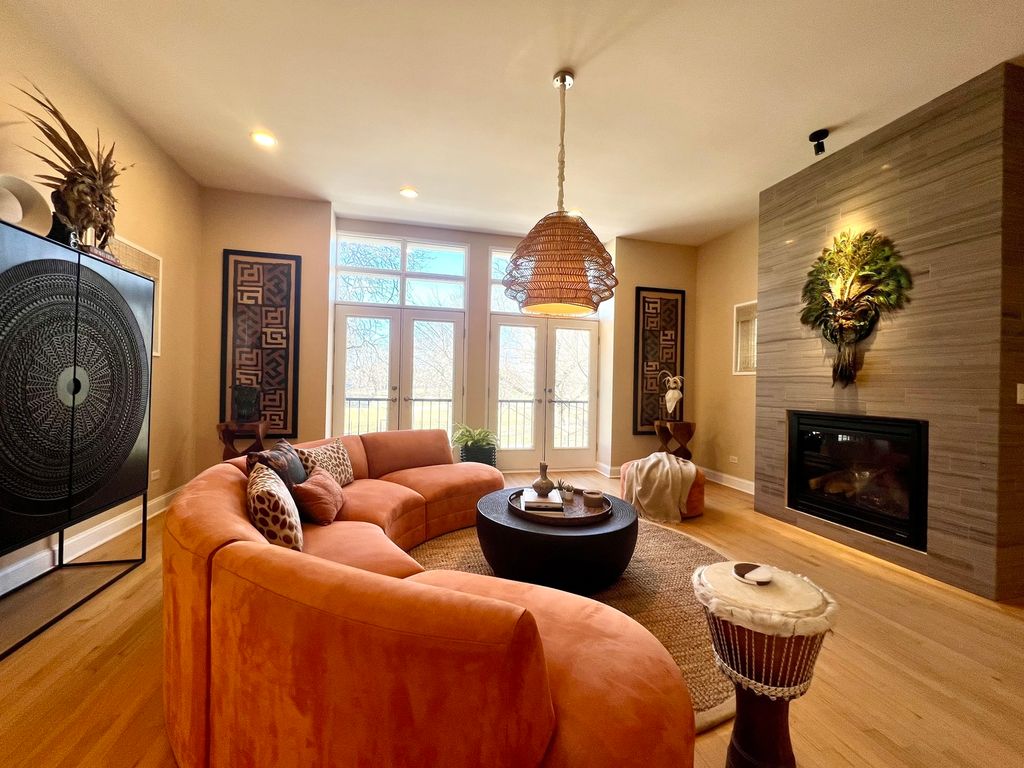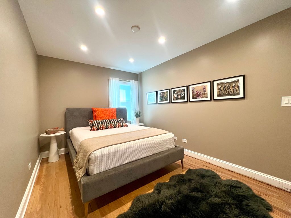 Rare opportunity to own one of only five fully detached (windows on all sides) all-brick contemporary single-family homes within this private gated enclave in Bronzeville/Douglas. Built in 2010, approximately 3,200 sq ft, and located on the closest residential street to the lake. No prior resales within this gated community. Unlike many newer construction homes in the area, this property is built on a slab with all living space above grade - no basement, no below-grade windows, and no flood exposure. Full-height windows and hardwood floors throughout provide consistent natural light across all levels. Flexible tri-level layout designed as a traditional single-family home. The fully above-grade first level is currently used as a family room, fourth bedroom, and office/library/sitting area. Includes full bath, under-counter combo washer/dryer, and kitchenette with sink, microwave, upper cabinetry, and under-counter refrigerator. Adaptable space for extended family, guests, or evolving household needs. The main living level features 11' ceilings, dramatic three-story window, fireplace, and open-concept living/dining. Eat-in kitchen offers breakfast bar seating plus table space. Large roof deck with natural gas line for grilling, water, speakers and electricity- perfect for entertaining outdoors. Top floor includes three bedrooms and two full baths. Primary suite features fireplace, two closets, and dedicated washer/dryer area. Recent updates: newer roof, furnace, hot water heater, washer/dryer, French door refrigerator, and microwave. Attached 2-car garage accessed via secured electronic gate. Gated front yard, side yard ideal for pets or gardening, and ample street parking (restricted to residents during summer months). Master Association for neighborhood $13/month. No HOA fee.