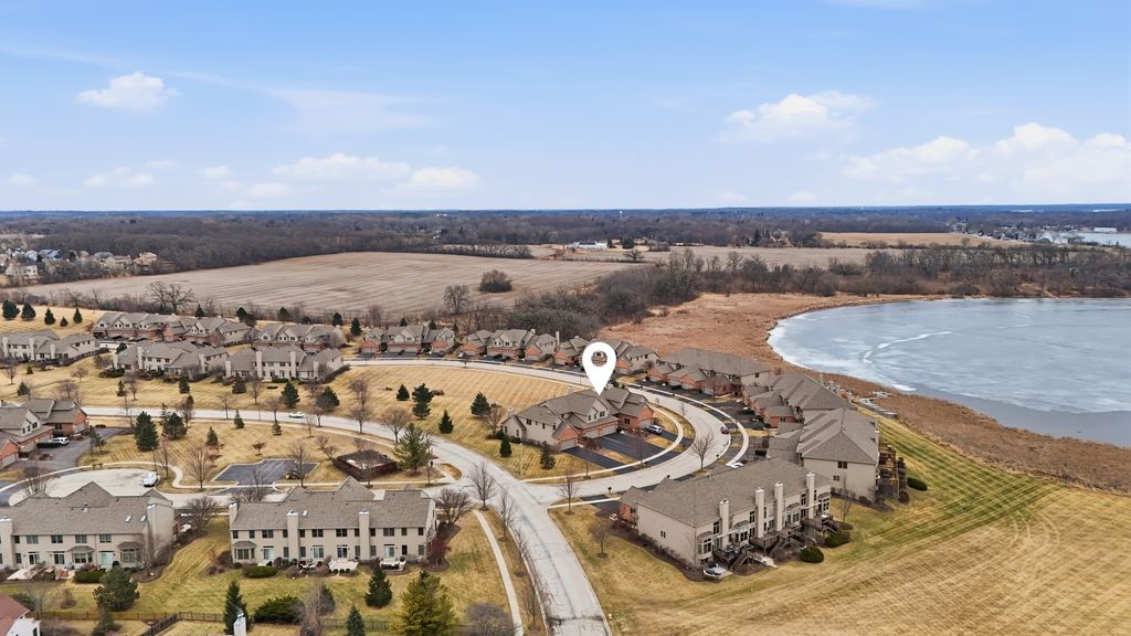 Live the lake lifestyle with direct access to the Chain O'Lakes-Illinois' premier boating destination featuring over 6,800 acres of interconnected waterways across 15 lakes known for boating, fishing, waterfront dining, and year-round recreation. This beautifully maintained executive townhome with water rights to Lake Marie offers a rare opportunity for lake lovers. Even better, a private boat slip is available for purchase separately, allowing the next owner to enjoy seamless boating access to the Fox Chain O'Lakes system. Perfect as a primary residence, weekend lake house, or second home, this spacious 2-bedroom + loft (easily convertible to 3 bedrooms) and 3.5-bath townhome blends low-maintenance living with one of Northern Illinois' most desirable recreational communities. The open-concept floor plan is filled with natural light and designed for effortless entertaining, featuring soaring cathedral ceilings, natural oak hardwood floors, and a stunning brick-style fireplace that anchors the main living space. The kitchen and dining area showcase neutral finishes and modern lighting, creating a move-in ready home ideal for everyday living or hosting after a day on the water. The primary suite offers views of Lake Marie, complete with a spa-inspired ensuite bath featuring a custom shower, double vanity, and walk-in closet. Upstairs bedrooms provide comfortable accommodations, while the expansive loft overlooking the living room can easily convert into a third bedroom, home office, or additional lounge space. The finished basement with 9-foot ceilings and a full bath dramatically expands the home's functionality-perfect for guests, recreation, or a dedicated work-from-home setup. Outside to an oversized deck overlooking open green space, creating the perfect setting for relaxing evenings or summer gatherings before heading out on the lake. Additional features include a heated 2-car garage, whole-house generator, whole-home filtration system, and reverse osmosis system at the kitchen sink. Recent updates include roof (2024), garage door (2024), A/C (2025) with transferable 10-year warranty, humidifier (2025), water heater (approx. 2026), ejector pump (approx. 5 years), and sump pump (approx. 2 years).