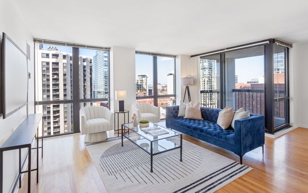 Spacious NorthWest-facing 2-bedroom/2-bath residence at The Elm @ Clark in the heart of the Gold Coast w/ parking included! This well-designed pet friendly unit offers generous living and dining areas, two large bedrooms, and a private covered balcony ideal for entertaining. This recently painted & the only '03 tier on the market features what you are looking for in this building; hardwood floors, floor to ceiling windows, updated lighting, NO popcorn ceiling, well-appointed kitchen with stainless steel appliances, granite countertops, and custom cabinetry. The primary suite includes ample closet space and a private upgraded en-suite bath. A second full bathroom offers similar finishes w/ a tub. In-unit laundry can be added with HOA approval. The Elm at Clark is a full-amenity building featuring 24-hour door staff, 24-hour fitness center, outdoor pool w/ sundeck, multiple grilling areas, and bike storage. Recent building improvements include a new roof, updated elevators, completed facade and balcony work. Over $1.3M in reserves and strong owner occupancy. Location can't be better; walking distance to Wells Street activity/festivities, lake front access, CTA/Red Line, grocery, Rush Street restaurants, Oak St/Michigan Ave shopping & the Gold Coast farmers market --- All steps from the front door.