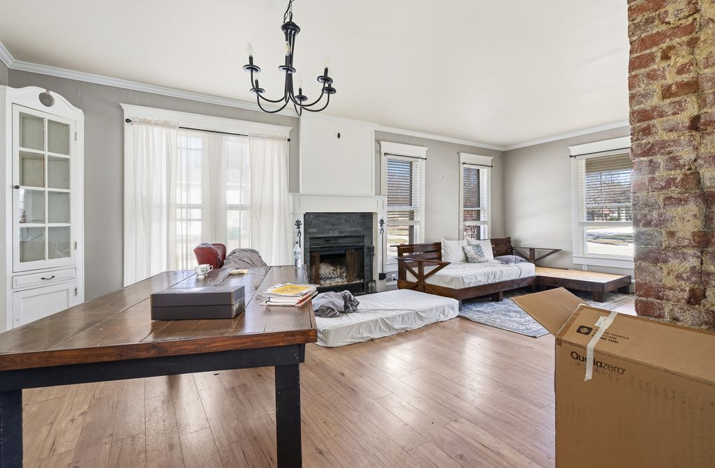 Spacious and full of character, this 4-bedroom, 2-bath home in Streator offers solid construction and plenty of potential for its next owner. The main floor features beautiful crown molding throughout, adding timeless charm to the living spaces. The kitchen includes an island and classic wainscoting, creating a warm and inviting space for cooking and gathering. The living room is anchored by a cozy wood-burning fireplace with a convenient gas starter, perfect for relaxing evenings at home. A first-floor bedroom provides flexibility for guests, an office, or convenient main-level living. The remodeled main-floor bathroom features a modern stand-up shower. Upstairs, you'll find additional bedrooms with nicely sized closets, each equipped with organizers for added functionality. Real hardwood floors run through the majority of the second level, bringing warmth and durability to the space. The unfinished basement includes a dedicated laundry area and offers plenty of storage or future finishing potential. Major mechanical updates include a newer Carrier furnace and central AC unit. Situated on a corner lot, the property also features a fenced backyard and a 2-car detached garage. With great bones and solid features already in place, this home is ready for someone to add their personal cosmetic touches and make it truly shine.