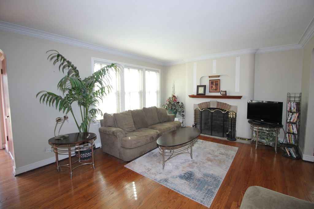 Charming and impeccably maintained brick Georgian packed with upgrades and space! This 2-bedroom, 1.5 ceramic bath home features formal living and dining rooms with art-deco inspired fireplace, hardwood floors, and classic plaster cove molding. The dining room opens to an updated kitchen with Corian countertops, stainless steel appliances, and a stylish arched doorway. Enjoy extra living space in the main-level enclosed porch with wood laminate flooring and a finished basement with rec room and potential 3rd bedroom. Upstairs offers two oversized bedrooms with hardwood floors. Additional highlights include thermal-pane windows, a new exterior glass door, insulated attic for storage, foyer with vaulted ceiling, barrel vault ceiling in main level bath, and a concrete & paver driveway leading to a 1-1/2 car garage with new siding and service door (2025). All set on a huge lot with fantastic backyard- perfect for entertaining or relaxing. A classic home with modern updates and room to grow!