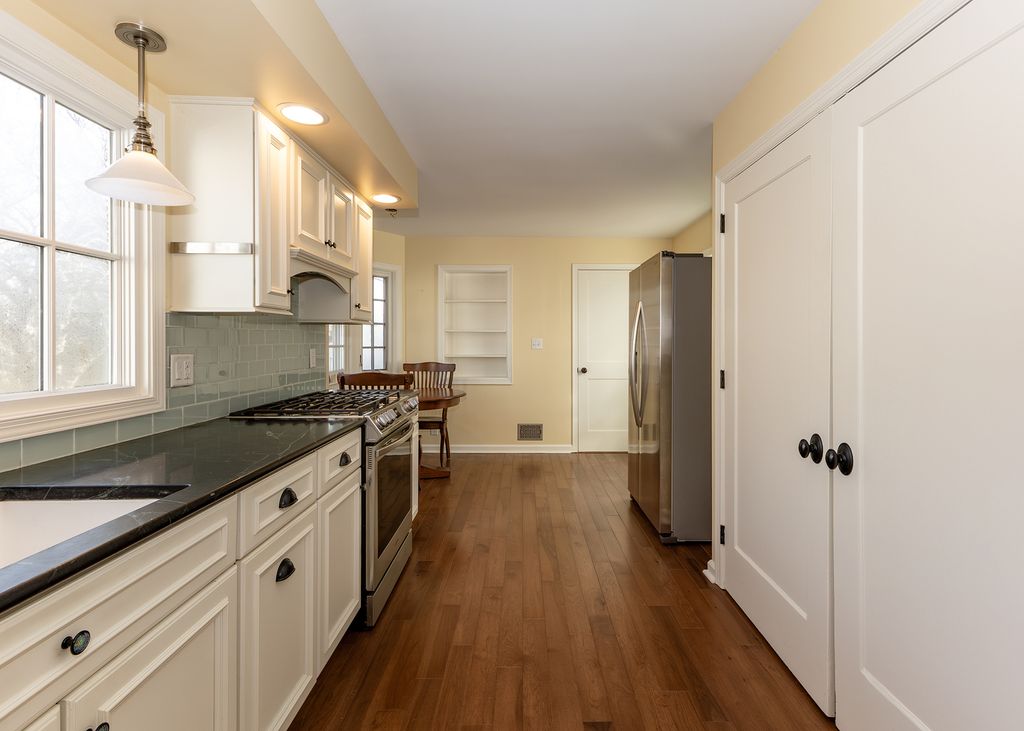 Charming 1.5-story home full of character and updates! This inviting property offers 3 bedrooms and 1.5 baths, blending classic charm with modern touches. The beautifully updated kitchen features stainless steel appliances, custom cabinetry, warm soapstone countertops, a stylish tile backsplash, hardwood floors, and a large pantry for plenty of storage. The main floor bath has been tastefully updated with a spacious tile shower. Step outside to enjoy the private, fenced backyard-perfect for relaxing or entertaining. The stunning patio with brick pavers and pergola creates a warm outdoor living space you'll love spending time in. A 2-car garage adds convenience and extra storage. This cute and well-maintained home is ready for its next owner to move in and enjoy!