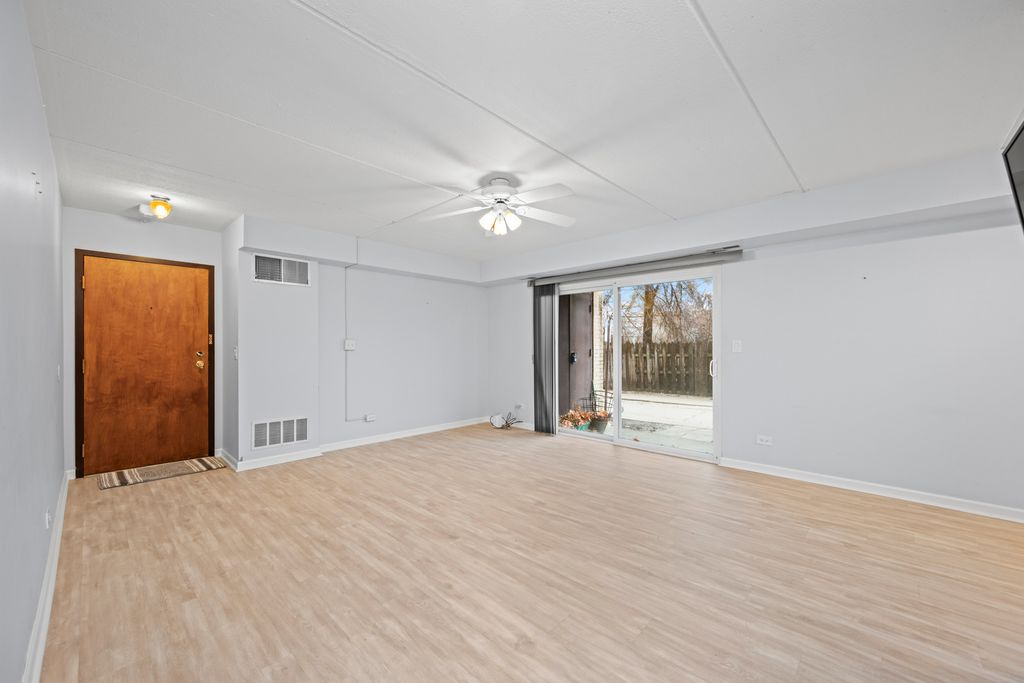 Spacious one bedroom condo with great location near the forest preserve and the Des Plaines River trail. This beautiful condo has light grey wood laminate flooring, neutral grey toned paint with white moldings. The bedroom has plush neutral carpeting, beautifully updated bath, high end window treatments and good closet storage. A wonderful feature is the patio that is a perfect spot to relax and have your morning coffee or enjoy a BBQ. Laundry and storage in the building on the same floor as the condo. Pets allowed. Move in ready. This condo can not be rented. Owner occupied only. The assigned parking space is # 89.