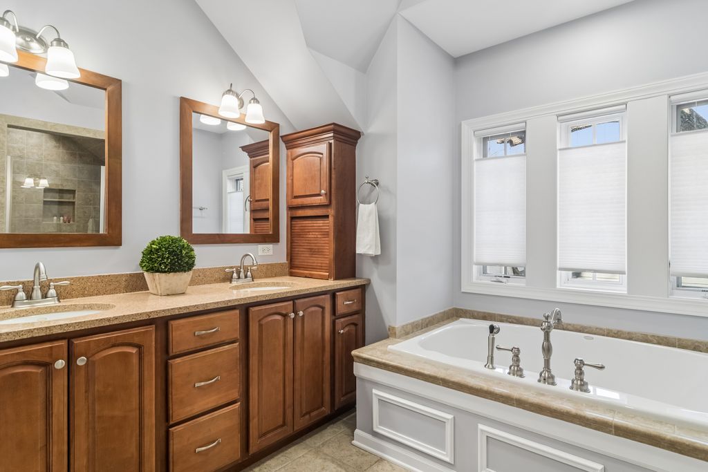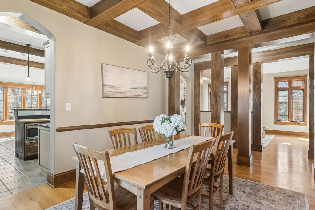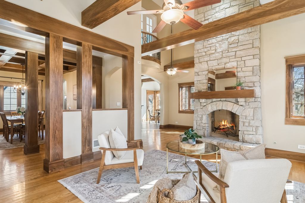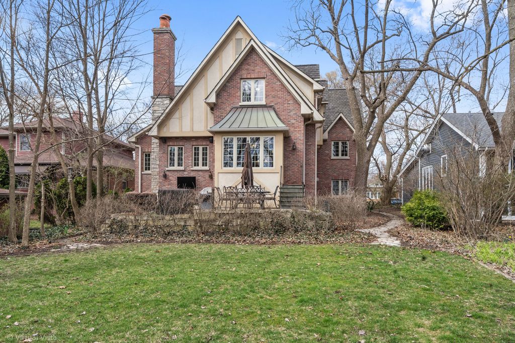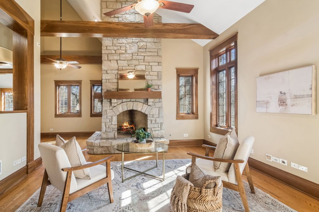 Presenting this perfect English Tudor on Prospect!This custom brick and stone masterpiece is situated on a picturesque, tree-lined street in the heart of Barrington, offering both charm and an unbeatable location within the award-winning Barrington District 220 school system. Spanning nearly 4,900 square feet of meticulously designed living space, this home seamlessly blends timeless elegance with modern convenience. A striking two-story entryway, soaring ceilings, and transom windows bathe the interior in natural light, while details like the coffered ceiling in the dining room and a double-sided stone fireplace add warmth and sophistication. The main level features a spacious home office with a private entrance, ideal for remote work. The gourmet kitchen is a chef's dream, complete with quartz countertops, stainless steel appliances (including a wine cooler), and a generous walk-in pantry. Upstairs, four expansive bedrooms all include walk-in closets and ensuite baths. The primary suite is a retreat in itself, with two walk-in closets, double vanities, a spa-like shower, and a private balcony overlooking the living area. The English-style lower level is designed for entertaining, offering a family room, fireplace, game room, full bar, bonus room, and walkout access to the backyard. Additional highlights include a heated attached garage, a welcoming wrap-around front porch, and a backyard paver patio perfect for outdoor gatherings. Located just steps from Roslyn Road Elementary and minutes from downtown Barrington, the Metra, brand new park district pool and parks, and I-90, this home combines convenience with exceptional craftsmanship. Designed by an architect homeowner, every detail has been thoughtfully executed to create a residence that is both stylish and functional. This extraordinary home is a masterpiece of thoughtful design, unparalleled craftsmanship, and distinctive style-unlike anything else you've seen!