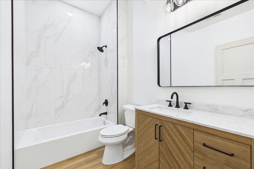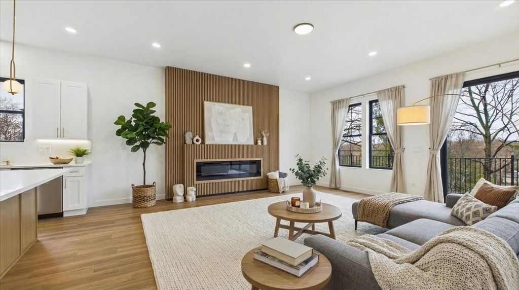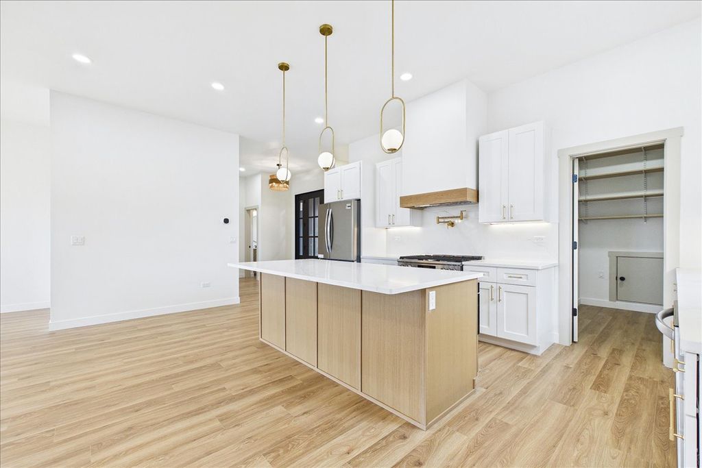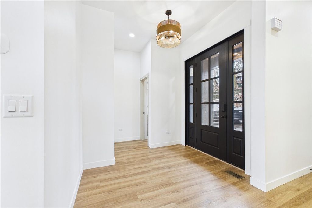 Brand-new construction in Lake in the Hills with elevated design, quality craftsmanship, and a point of view rarely found at this price point. Designed by a local builder with an architectural background creating high-end single-family homes in the north suburbs for more than a decade, this 4-bedroom, 2.1-bath home brings thoughtful design, strong flow, and higher-level finishes to a market often dominated by more standard new construction. Set on a hillside lot with scenic views, the home offers approximately 2,970 square feet of finished living space, 10-foot ceilings on both levels, abundant natural light, and a layout designed for modern living. The open-concept main level features a striking fluted wood fireplace wall and seamless connection between the living, dining, and kitchen spaces. The kitchen pairs style and function with quartz countertops, a 36-inch range, pot filler, oversized island, butler's pantry, and a convenient grocery door from the attached garage. A sliding glass door opens to a private balcony, extending the living space outdoors. The main-level primary suite includes separate walk-in closets and a spa-inspired bath with double vanity and multi-head shower. The finished lower level offers high ceilings, a spacious recreation area, three additional bedrooms, a full bath, and exterior access. Andersen windows, Kohler fixtures, an insulated EV-ready garage with an 8-foot door, and carefully considered details throughout complete a home built to stand apart from the typical new construction landscape. Builder will seed landscape and add shrubbery.