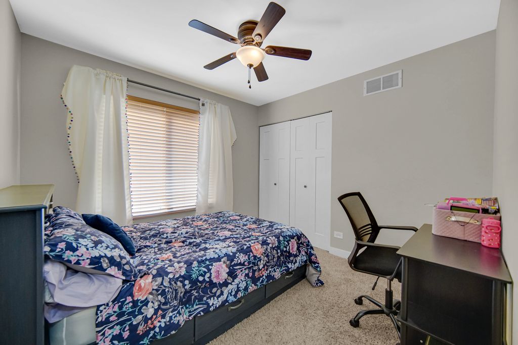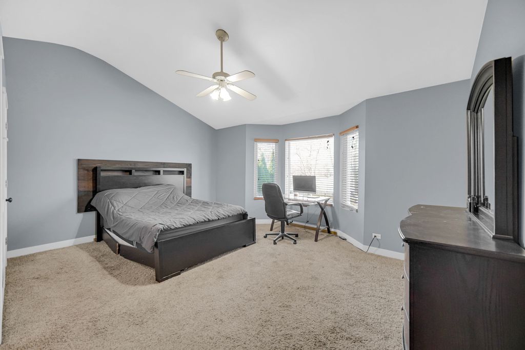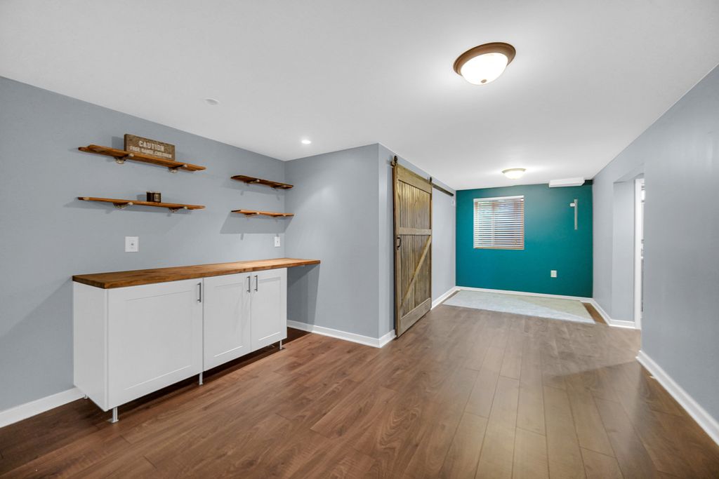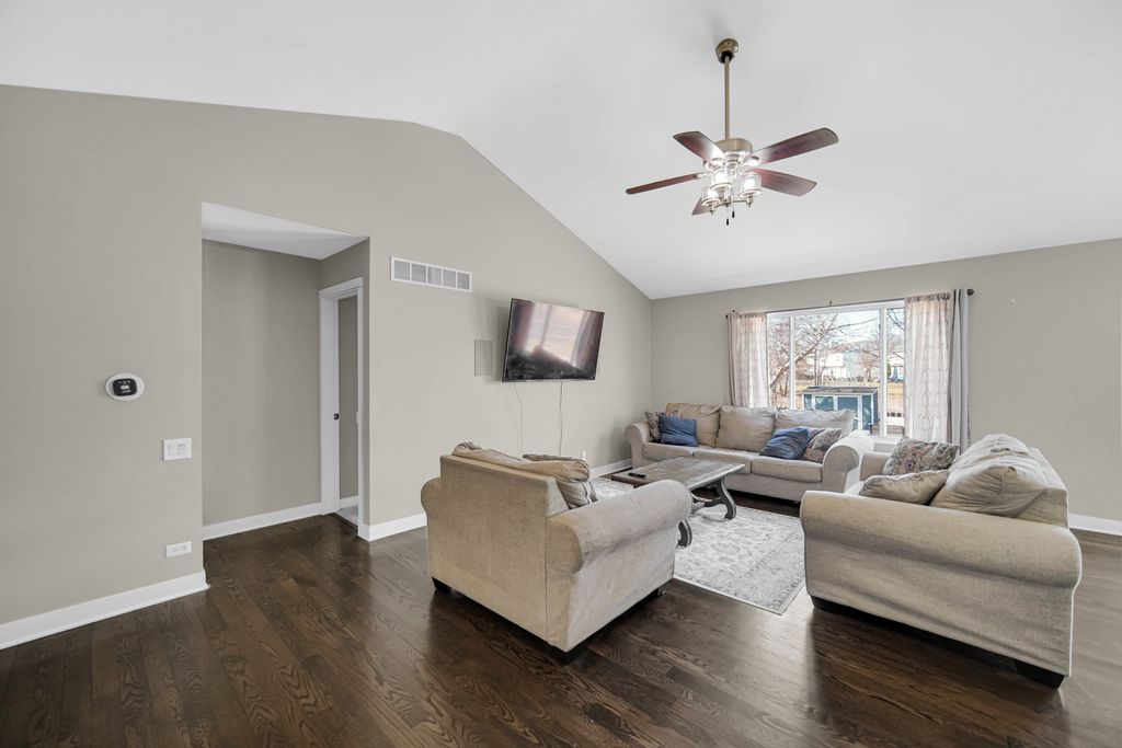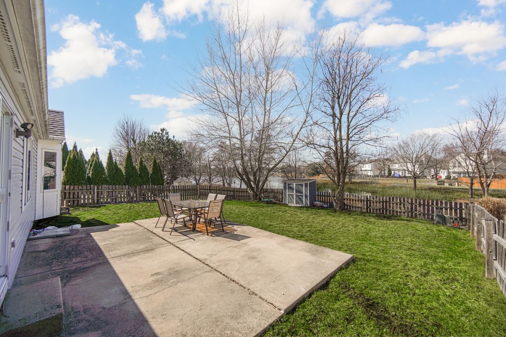 Rarely available ranch in desirable Harbor Springs with beautiful water views! Enjoy stunning sunsets from your fenced backyard overlooking the pond. Step inside to a welcoming foyer featuring gleaming hardwood floors and upgraded wainscoting, setting the tone for the quality finishes found throughout the home. Upgraded paneled doors add an elevated touch rarely found in homes of this style. The main level offers 3 bedrooms and 2 full baths, including a private primary suite. The kitchen features stainless steel appliances and a pantry and flows seamlessly into the spacious living and dining areas-perfect for everyday living or entertaining. Step outside onto the patio and take in the peaceful setting and scenic pond views from your backyard. The finished basement nearly doubles the living space, featuring a large family room, 4th bedroom, full bath, built-in bar, barn door accents, egress windows, and an impressive storage room. This home has been lovingly cared for: Roof (2017), Furnace & A/C (2016), Patio door and primary bedroom windows (2015), Hardwood floors refinished (2017), Fence (2014), Shed (2016), and Driveway redone July 2023. Located in a highly rated District 308 school area with additional storage including built-in garage cabinets. A spacious backyard with beautiful water views makes this home truly special.