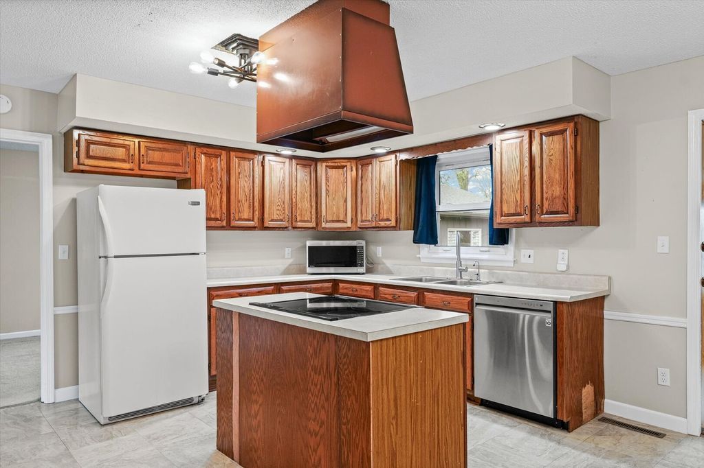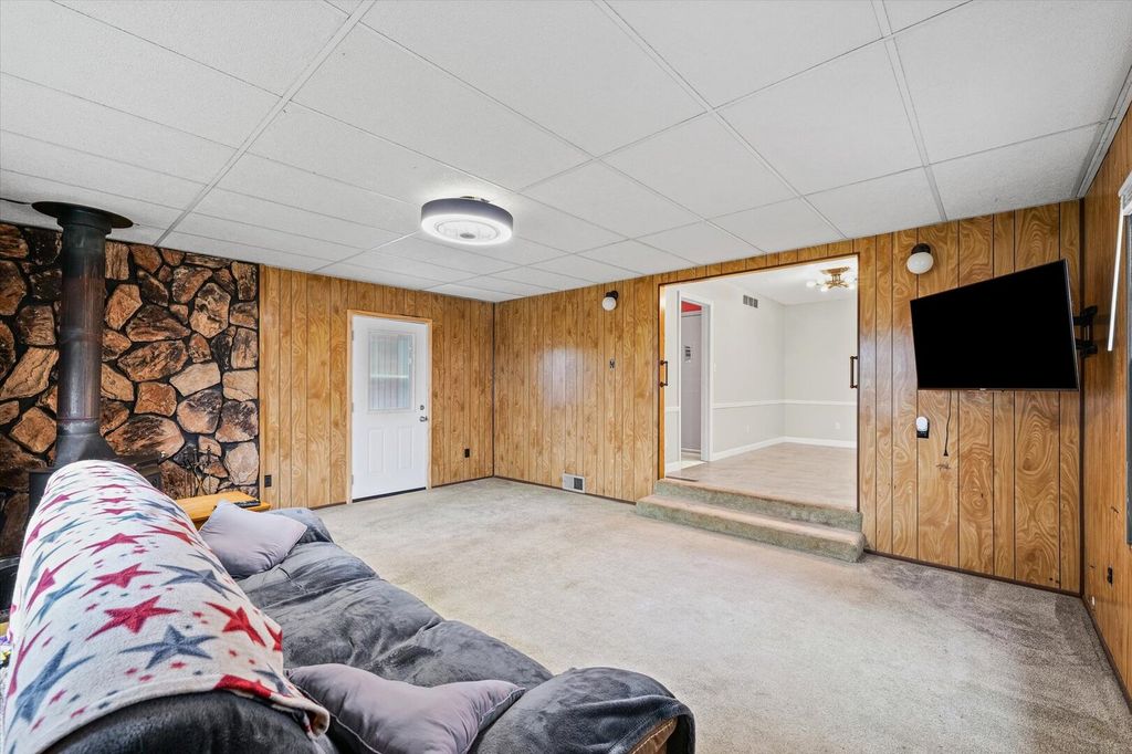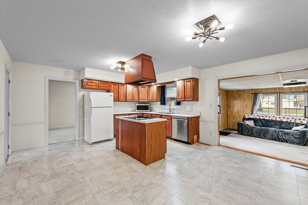 This charming one-story ranch home is conveniently located close to the lake and offers more space than it appears from the outside. The home features a comfortable living room and a very large kitchen with an island and dining area, perfect for cooking and entertaining. Enjoy additional living space in the family room with a cozy wood-burning stove, along with a separate dining room for gatherings. The home includes 3 bedrooms and 2 full bathrooms, 1870 sqft. including a private primary (master) bath. A large laundry and pantry area provides excellent storage and functionality. The property also offers an attached two-car garage, plus an additional detached garage/workshop accessed from Bloxom St., featuring a one-car door and workspace ideal for hobbies, tools, or extra storage. Outside, you'll find a fenced backyard, a garden shed, and plenty of space to enjoy outdoor living.