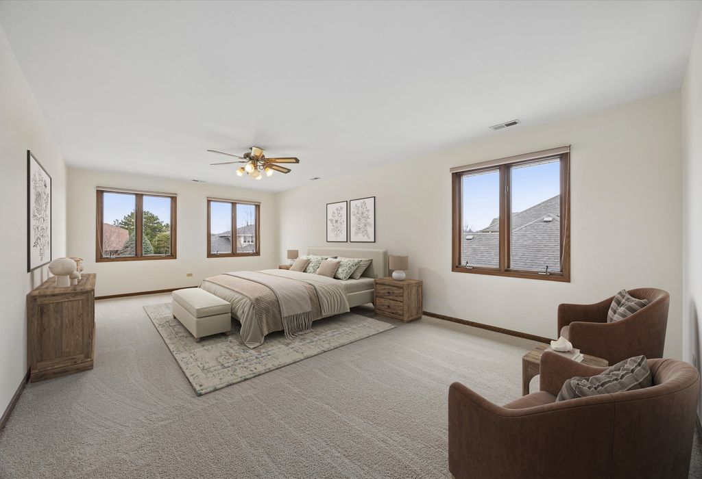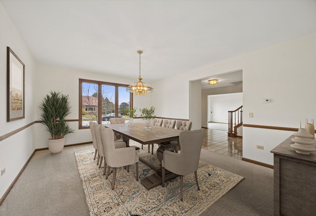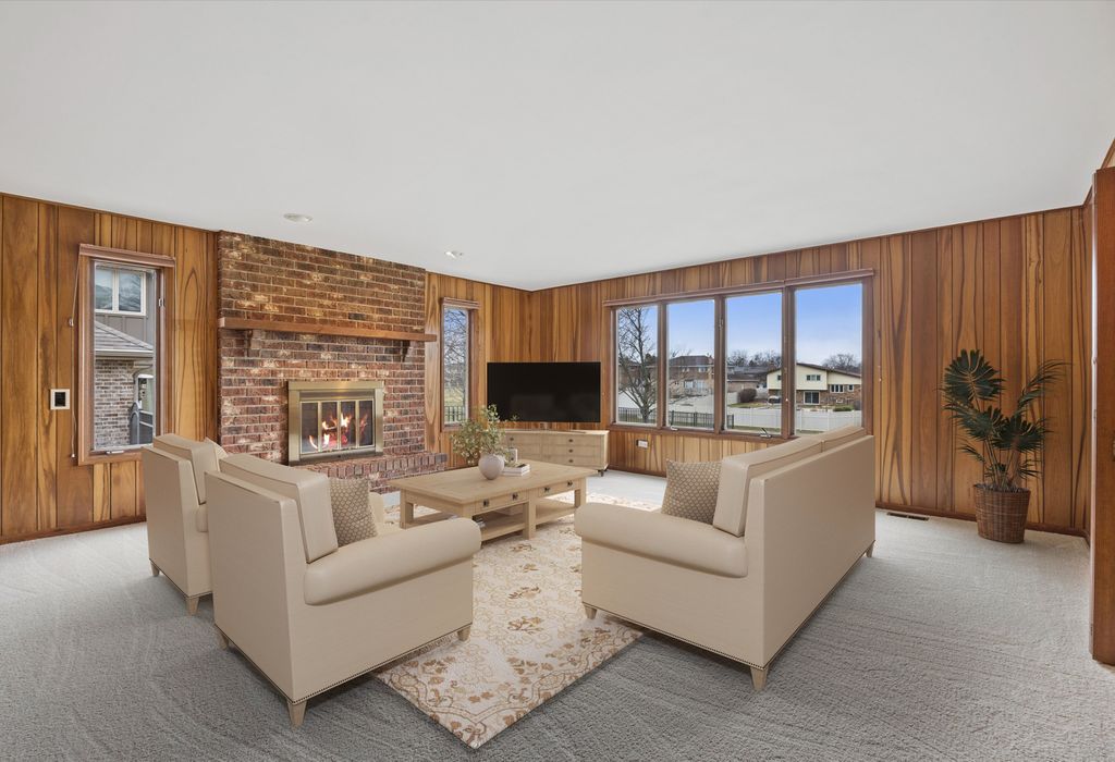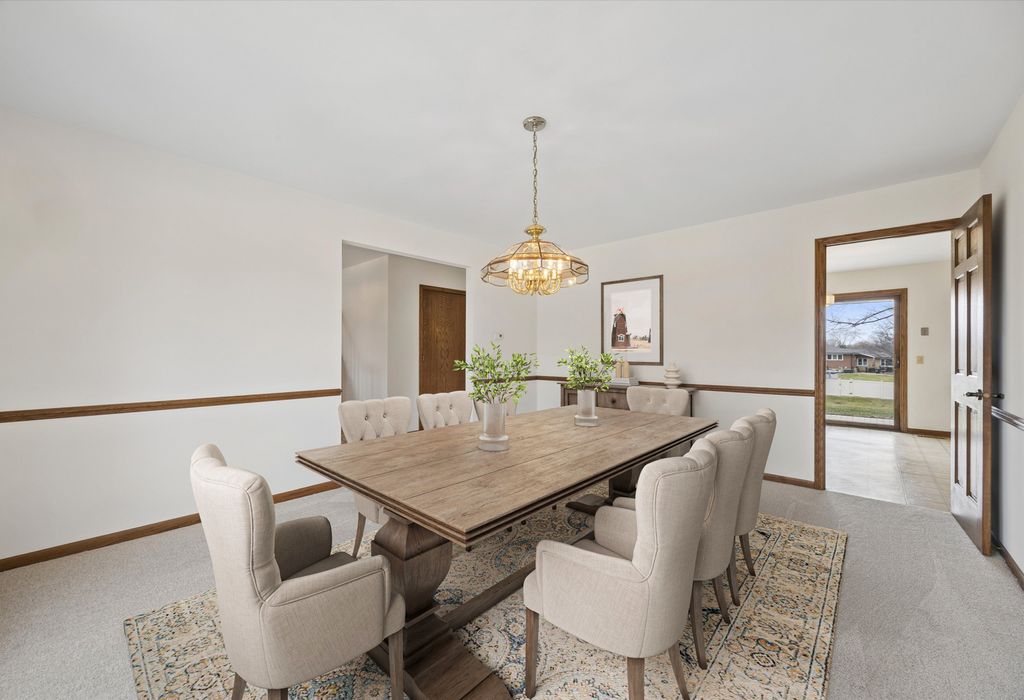 Welcome to this timeless two-story home ideally situated at the end of the block in one of Palos Park's most sought-after neighborhoods within the Sandburg / Stagg "option zone". Backing to Mill Creek, the home enjoys a peaceful, scenic setting with beautiful natural surroundings & added privacy. Complementing its beautiful surroundings, the home offers strong curb appeal that demands attention with a timeless, maintenance-free brick & Hardie Board exterior. Inside, you are welcomed by a warm & inviting layout featuring spacious living areas; abundant natural light; & a thoughtful floorplan designed for both everyday living & entertaining. As you are welcomed into the home from the spacious foyer, you'll immediately notice the generously sized living & dining rooms, both with abundant windows, fresh paint, & brand new carpeting - a blank canvas offering endless possibilities to create functional, beautifully designed spaces. The focal point of the home is the incredibly cozy family room, which was bumped-out from the original floorplan to add space where it's needed most. The family room features windows overlooking the scenic backyard, a floor-to-ceiling brick fireplace with wood mantle, & wet bar. The kitchen features a functional layout with abundant cabinetry; ample countertop space; peninsula with room for seating; sleek stainless steel appliances; window overlooking the backyard; & spacious dining area for seamless everyday living & gathering. Upstairs you'll find the expansive primary suite plus three additional bedrooms. The primary suite features a walk-in closet with shelving, vanity area, & bathroom with step-in shower. The additional bedrooms also feature ample closet space in the walk-in closets; natural light; fresh paint & carpet; & share a spacious full hall bathroom. The FINISHED basement expands the home's living space with a comfortable rec room, a spacious storage room, & a huge concrete crawl space offering plenty of additional storage. The stunning backyard is complete with a large brick paver patio overlooking Mill Creek. These original owners have loved this home & are proud to be offering it for the first time ever! Recent upgrades include: brand new tear off roof, gutters, & fascia (2025); newer Hardie Board siding & trim (2022); new water heater (2025); freshly painted throughout main & upper levels (2026); & brand new carpeting installed (2026). Located within the highly rated Palos 118 / 230 school districts & the coveted Sandburg / Stagg "option zone" in which homeowners can choose which high school their children attend. Close to abundant shopping, dining, & transportation options - all while being minutes from various forest preserves, nature trails, lakes, & more! Don't miss your opportunity to own this beautiful home!