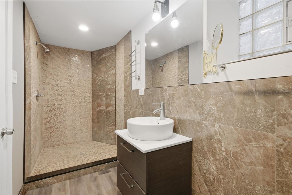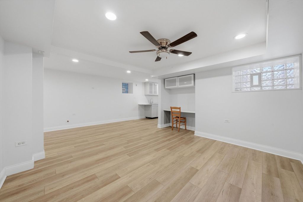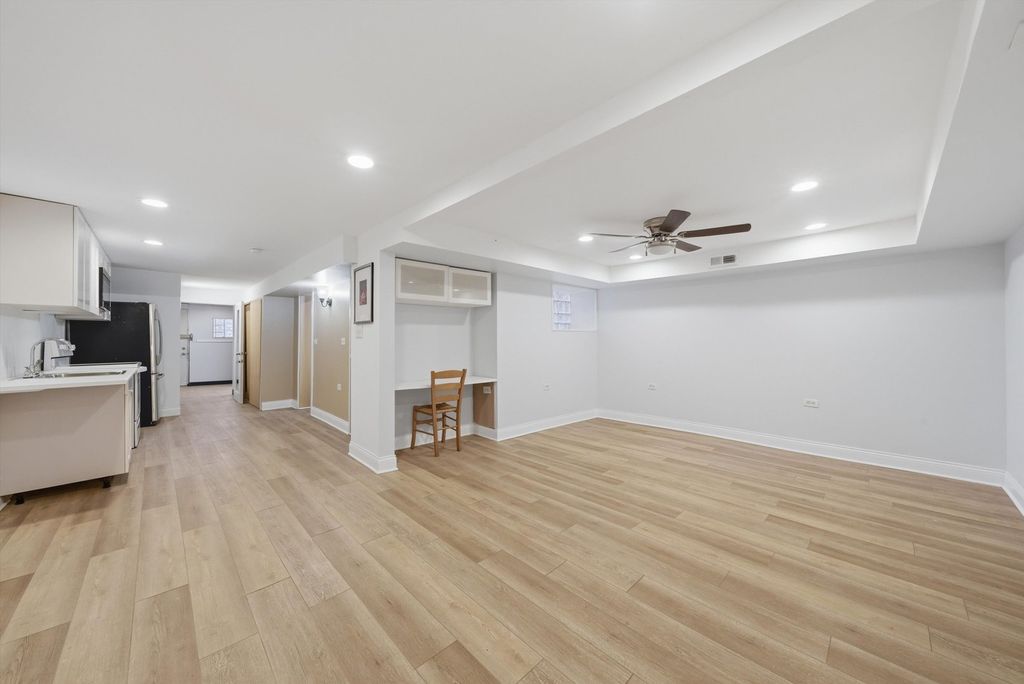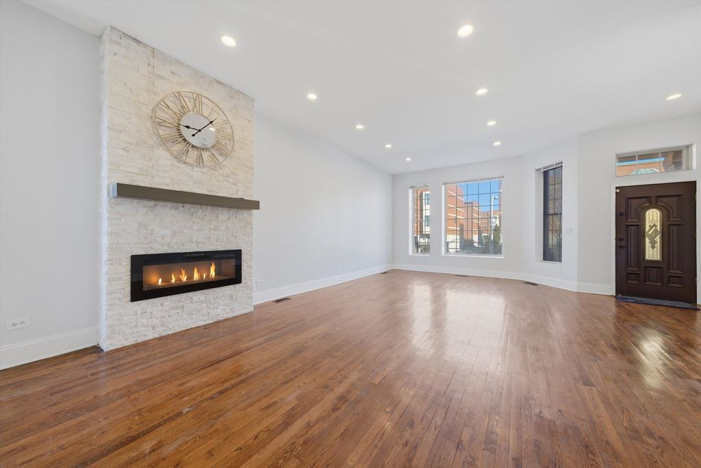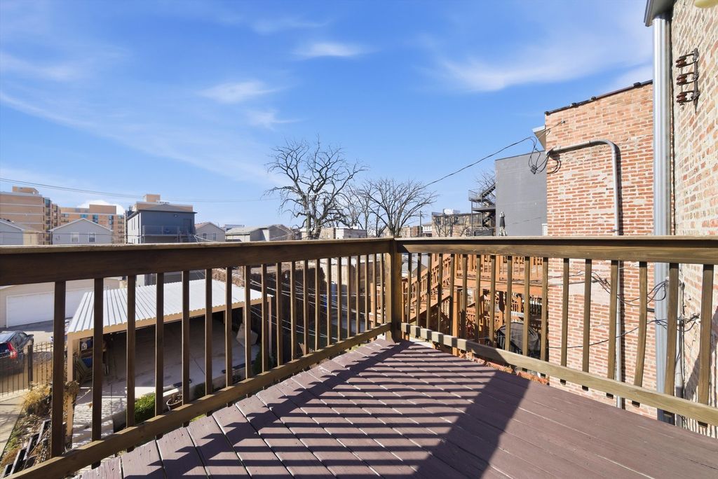 Exceptional updated Greystone with a duplexed owner's residence, and an income-producing garden apartment. Zoned as a legal 2-unit but currently used as a single family residence. Thoughtfully renovated throughout, this distinctive property offers the perfect blend of classic Chicago architecture and refined modern living. The main residence features oak flooring, expansive sun-filled living spaces, a formal dining room, and a stunning designer kitchen appointed with quartz countertops, a large island with sink, stainless steel appliances, wine refrigerator, and abundant pantry storage. The kitchen opens to a private wood deck, ideal for everyday enjoyment and entertaining alike. The elegant winding oak staircase with overhead skylight leads to the second level, where you'll find three spacious bedrooms with Oak flooring throughout, second-floor laundry, and a spa-inspired bath complete with double vanity, separate shower, and whirlpool tub. The primary suite is a true retreat, featuring a walk-in closet and French doors opening to a private balcony overlooking the backyard. The duplex also features a separate furnace and central air systems for the main and second levels for comfort and efficiency. The garden unit offers private front and rear access -making it ideal for related living or supplemental rental income. It features a cozy kitchen complete with appliances, a large living room with combined eating area, one bedroom, a spacious bathroom with sleek contemporary finishes, and a thoughtfully designed layout for both comfort and style. Separate laundry and utility room. The outdoor amenities include a wood deck leading to a brick paver patio, an enclosed yard with well a maintained lawn perfect for pets or relaxing. A garage with large overhead door with remote access connected to a covered carport that accommodates 4 vehicles. Conveniently located near I-290, the United Center, UIC Medical District, shopping, dining, and views of the Chicago downtown skyline. This is a rare opportunity for homeowners and investors alike. Schedule a private tour today!