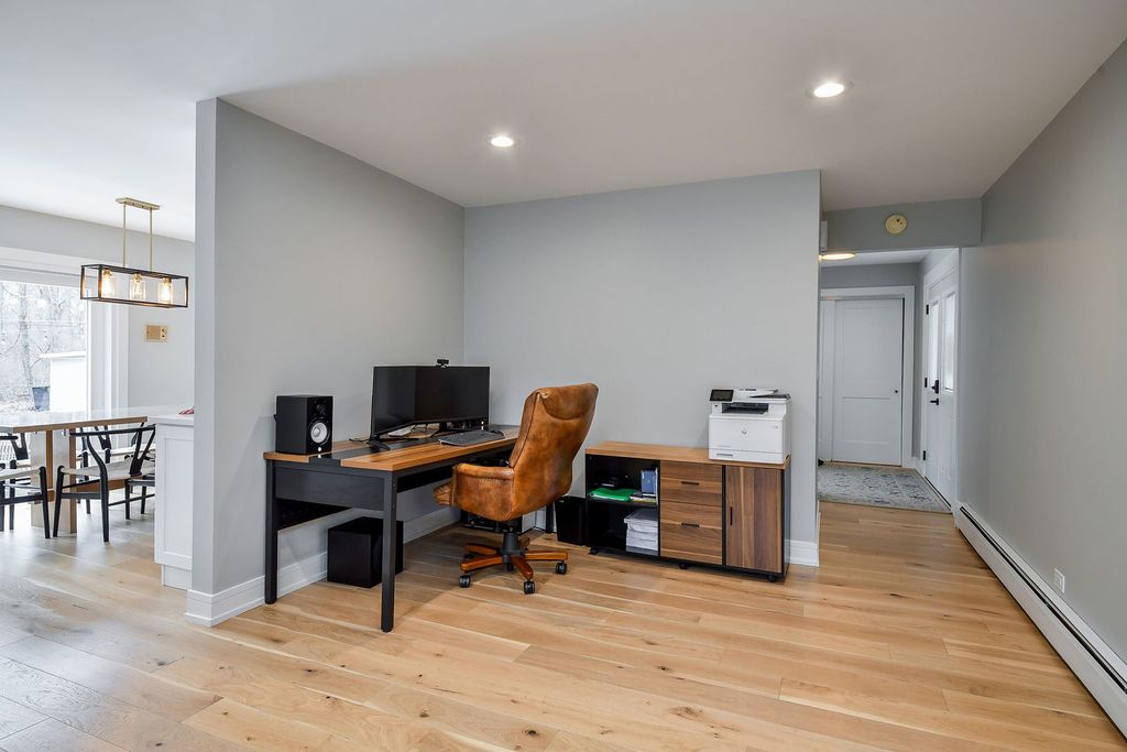 Stunning renovation of this fabulous ranch with a finished basement. Attention to detail and meticulous craftsmanship are evident from the moment you enter the home. The open floor plan of the main level connects the family room to the kitchen and dining area to the living room providing a wide expanse for entertaining. The kitchen has generous new white cabinetry and new quartz countertops for storage and prep space. White oak floors run thoughout the main level except for ceramic tile in the baths. All three baths have have been renewed with new vanities, fixtures and flooring. The basement offers a large carpeted recreation room, full bath, laundry room and storage. Enjoy the lovely back yard patio with overhead lighting. The firepit and shed stay. The septic tank and field were recently rebuilt, including digging out the old pipes and putting new pipes in place. The pressure tank for the well was also recently replaced. Large Garage (28' x24') has epoxied floor, shelving Finally the roof and siding were replaced in 2025 and a whole house filtratration system makes this one outstanding buy!