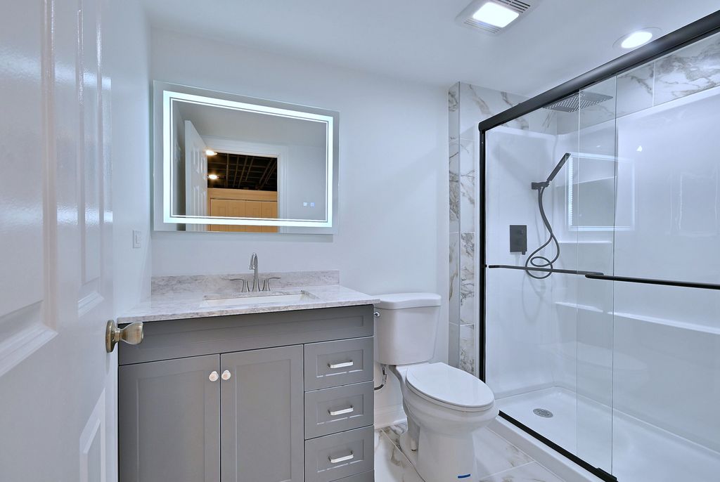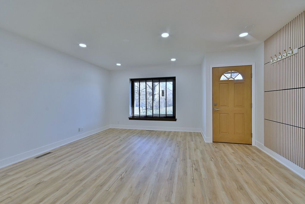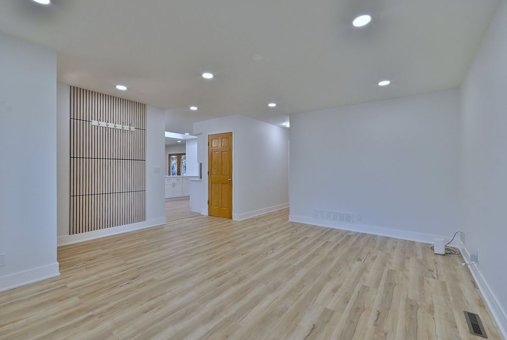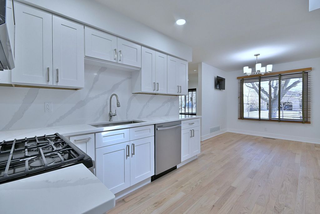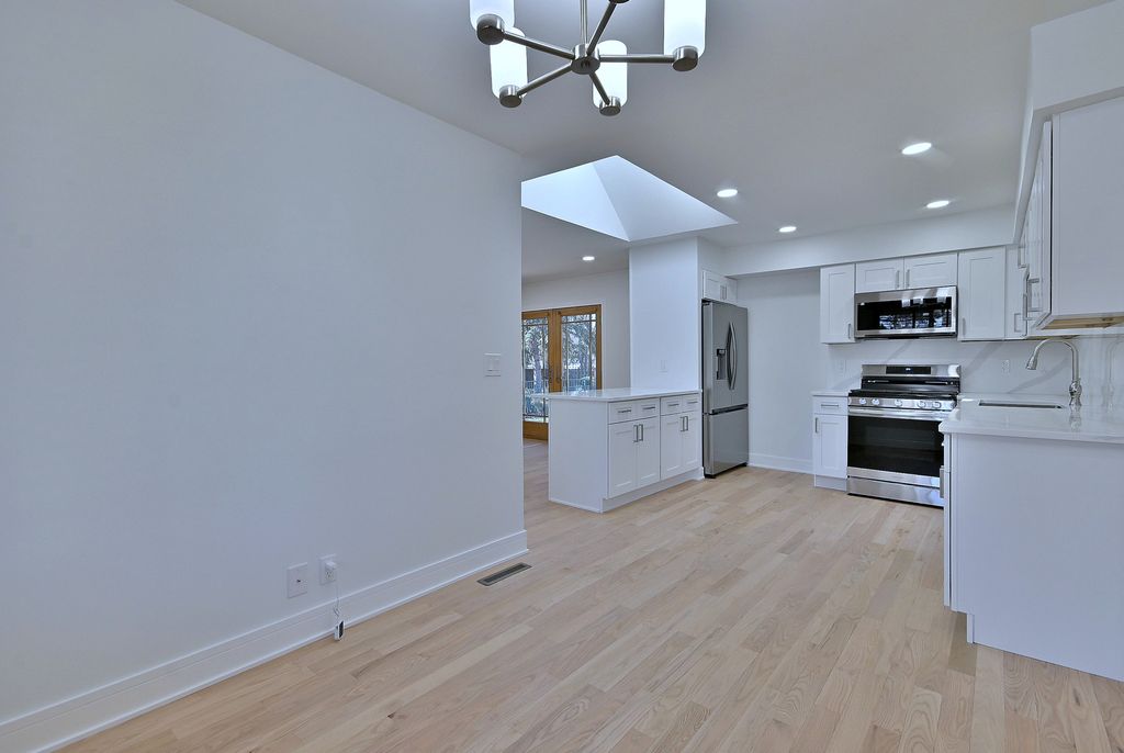 Way Bigger Than It Looks! Stunning Updated 4BD / 2.5BA Ranch - Move-In Ready. Don't miss this beautifully updated 4-bedroom, 2.5-bath ranch that offers far more space than it appears from the outside. With a bright open-concept floor plan, this home is perfect for both comfortable everyday living and effortless entertaining. The gorgeous modern kitchen features white cabinetry, quartz countertops, stainless steel appliances, a spacious eat-in dining area, and a breakfast island that opens to the inviting family room with a striking fireplace-creating the perfect gathering space. Step outside to enjoy a concrete patio ideal for summer entertaining, overlooking a fenced backyard with scenic views of acres of open land, plus a nearby walking trail and playground for outdoor enjoyment. Additional highlights include updated bathrooms, a fully finished basement providing valuable extra living space, and a huge laundry room for added convenience. Stylish, spacious, and completely move-in ready-this is the one you've been waiting for. Nothing to do but unpack and enjoy!